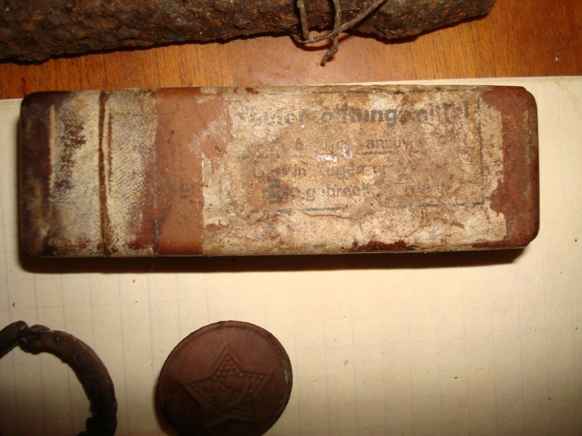 Маяцкий лес. 08.11.15г. Спичечница самодельная, окопное творчества. Алюминий.Егеря?