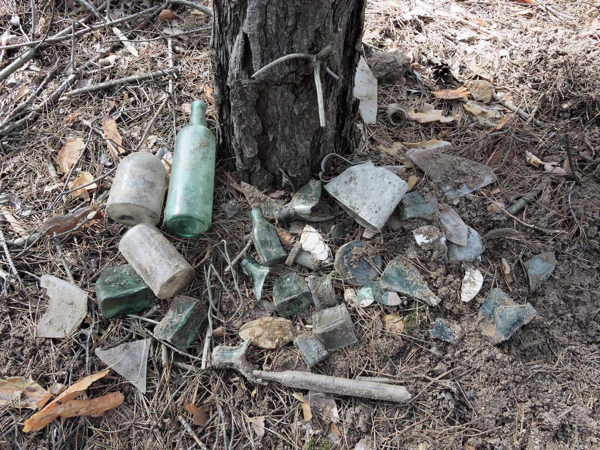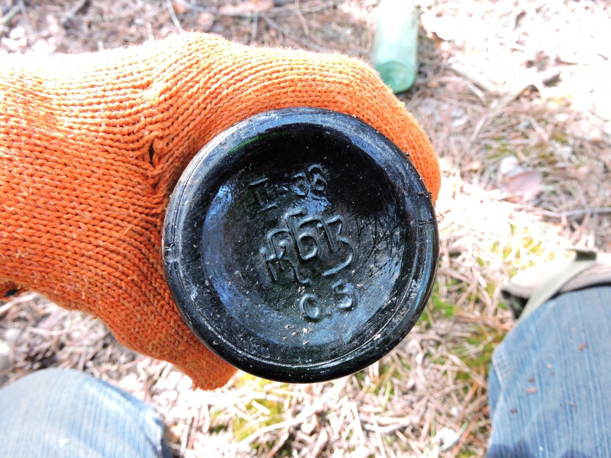 В одном месте в ямке лежало две старых бутылки, одна без опознавательных знаков, вторая константиновская 38 года (как по мне так пойдет, стекла почти нет в коллекции. есть только еще 1 такая же только слегка надбито горлышко и 39года. Копнул ту ямку а там куча стекла, разрыл полностью. целого почти нет, немного меди, помятая кружка с нацарапанной надписью на дне КА. убитая каска так и валялась наверху.