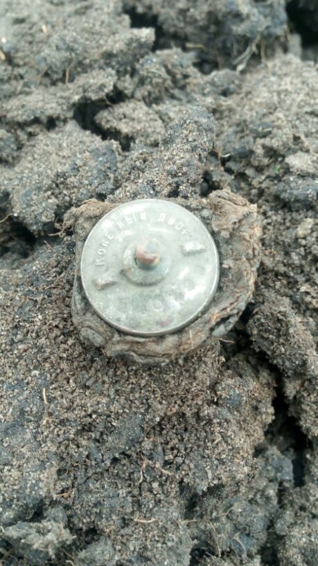 Доброго всем времени суток.Сегодня и я отметился. Поля засеяны, печаль, ,ходил у речушки. Много гильз. Очень. Но порадовала номерная пуговица. Такую еще не находил.