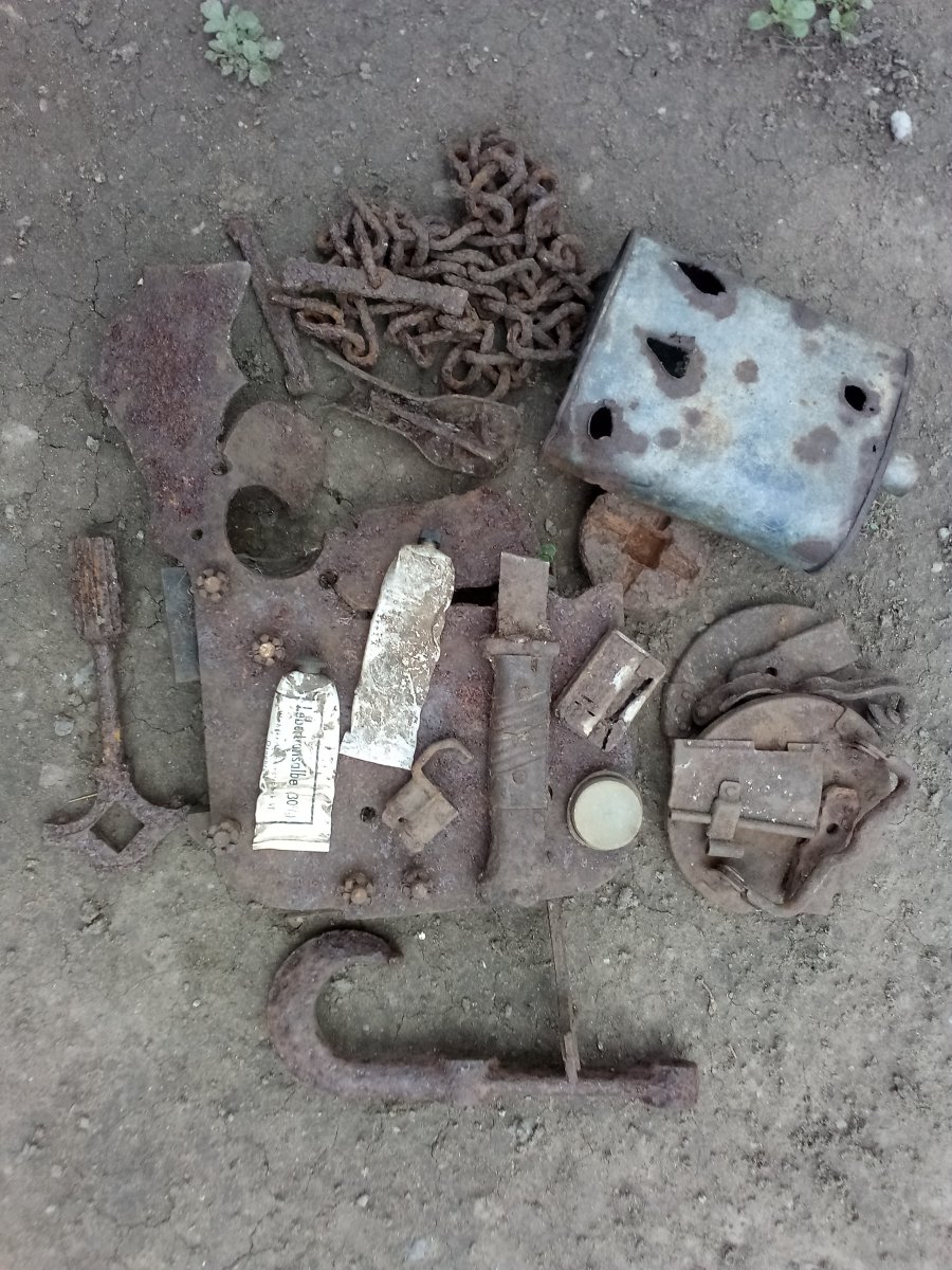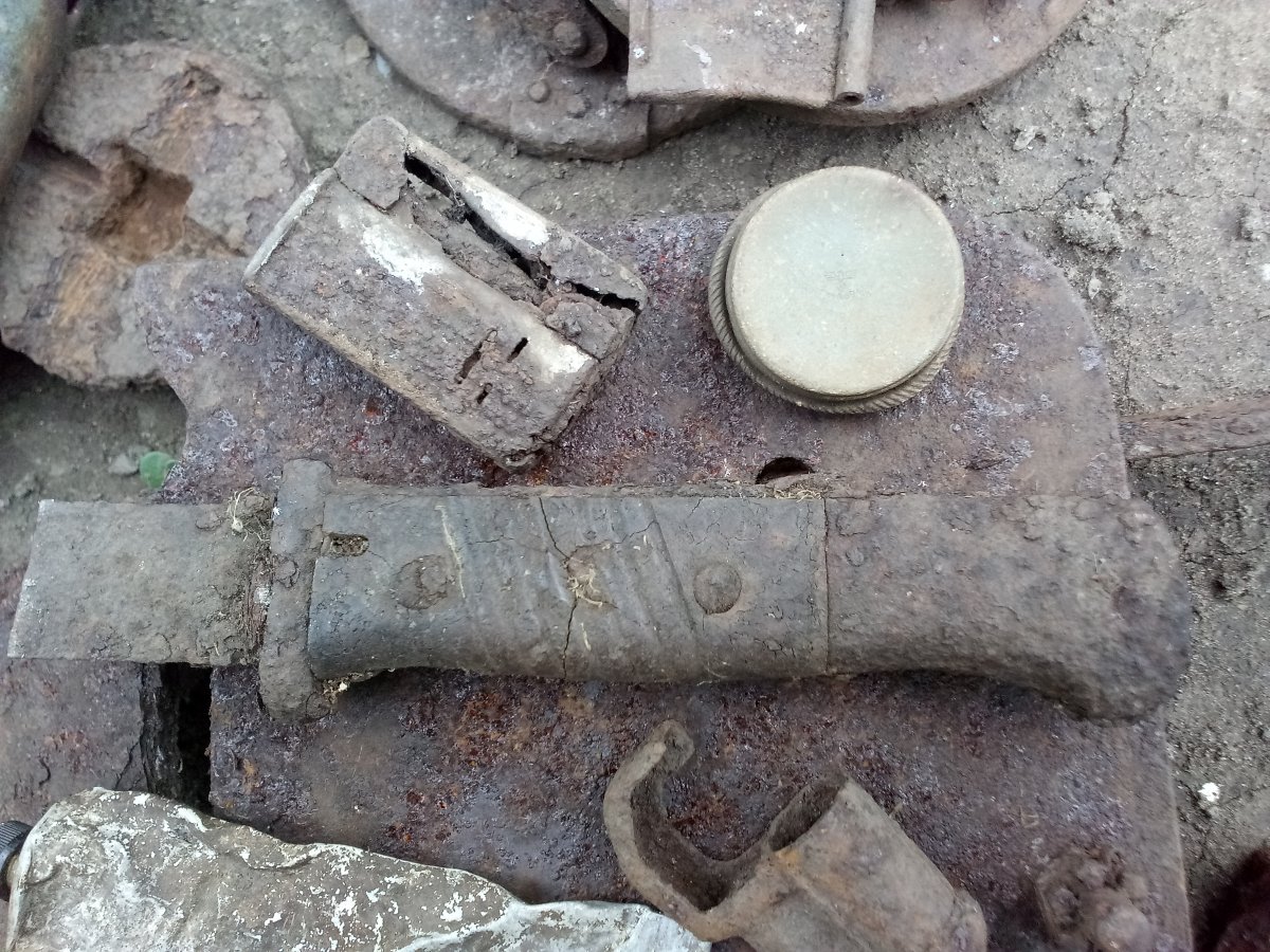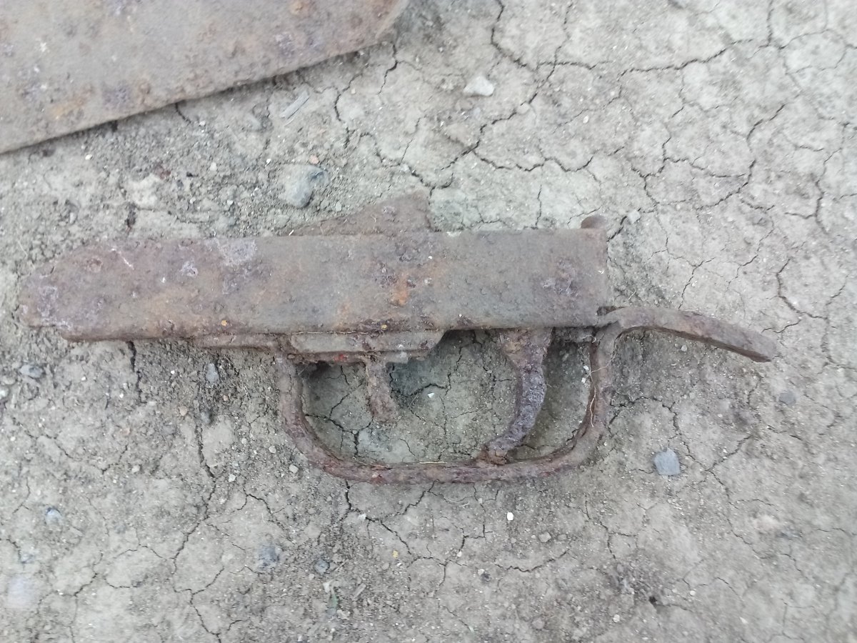 Сегодня выезжал семейством на природу, копнул немного) Штука железная непонятная, ржавчина довольно толстый слой, но от чего или что это, не пойму.
