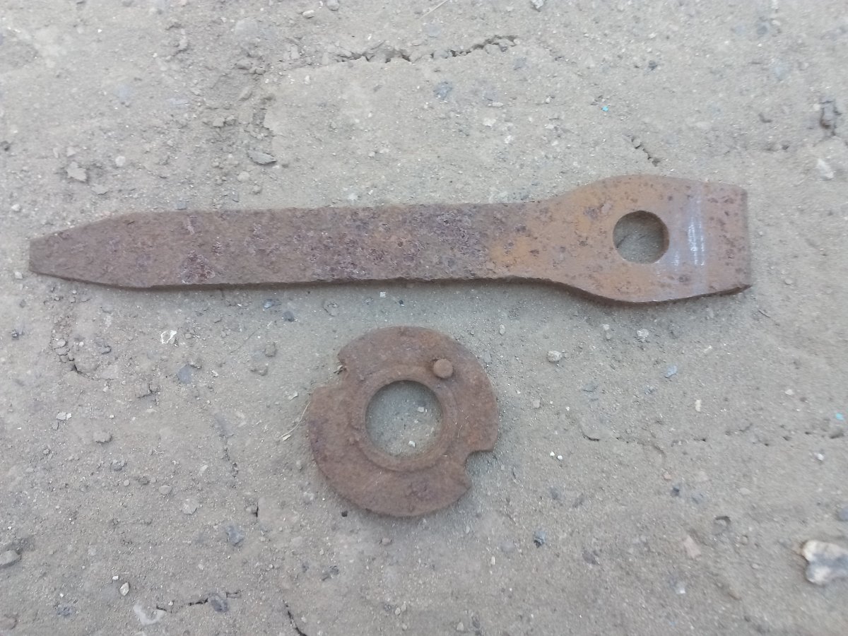 Приветствую. Сегодня коп в одиночку по выбитым местам. Подскажите пожалуйста что за деталь и гайка. С ув.