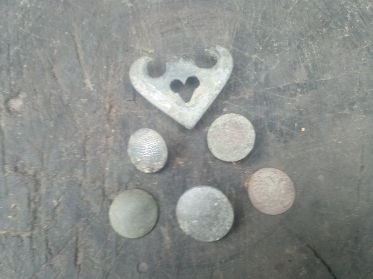 вот оно все что по интереснее поле отмываловки. Блестяшка - запчасть с электроприбора какого то - хлам в общем. По монетосам ценного ничего но и так доволен прогулкой, думал будет хуже