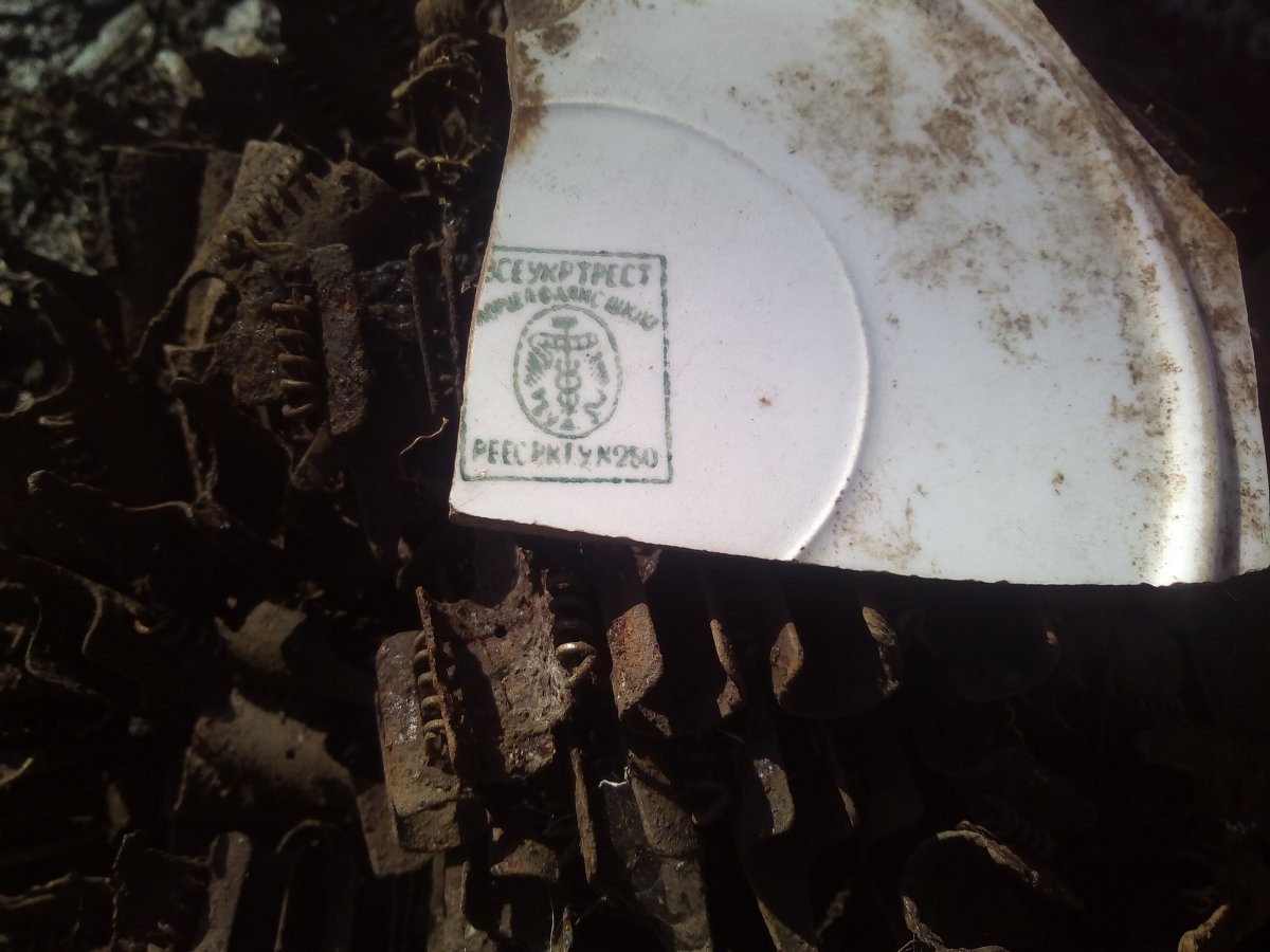 Судячи по відбитку клейма, це уламок тарілки Будянського фаянсового заводу (м. Буди, Харьківська обл.), виробництво кінця 20-х, початка 30-х років.
