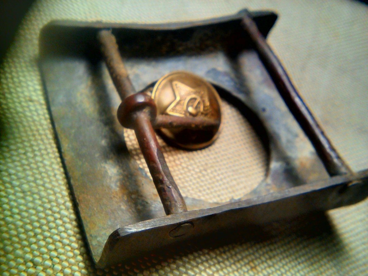 Народних умільців у війську вистачало . Ось ще такий вариант переробки - з латунної румунської пряги. Але в цьому випадку нічого особливо не витворювали - тільки прибрали геть гвардійську корону, залишивши порожній отвір: