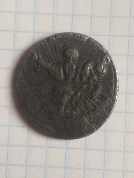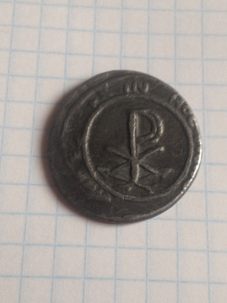 Ваша находка лично мне, не специалисту в нумизматике , представляется денарием. По символу "Р с крестом" - это крест Константина: http://lampada.in.ua/2016/09/vozdvizhenie-zhivotvoryaschego-kresta-gospodnya/ К сожалению не могу прочитать буквы на фото... Может быть вот этот материал Вам поможет в дальнейшем опознании находки: https://ru.wikipedia.org/wiki/Лабарум Наверное, лучше выставить Вашу находку на идентификацию специалистам в профильном разделе "Монеты". Честь имею!