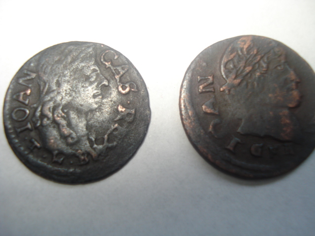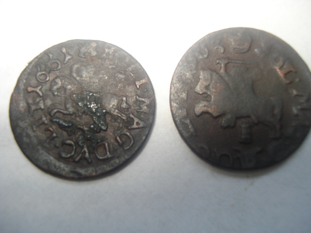 У Вас литовские солиды (боратинки) Яна II Казимира. Правая монета фальшивая, левая - 1661 года рождения.