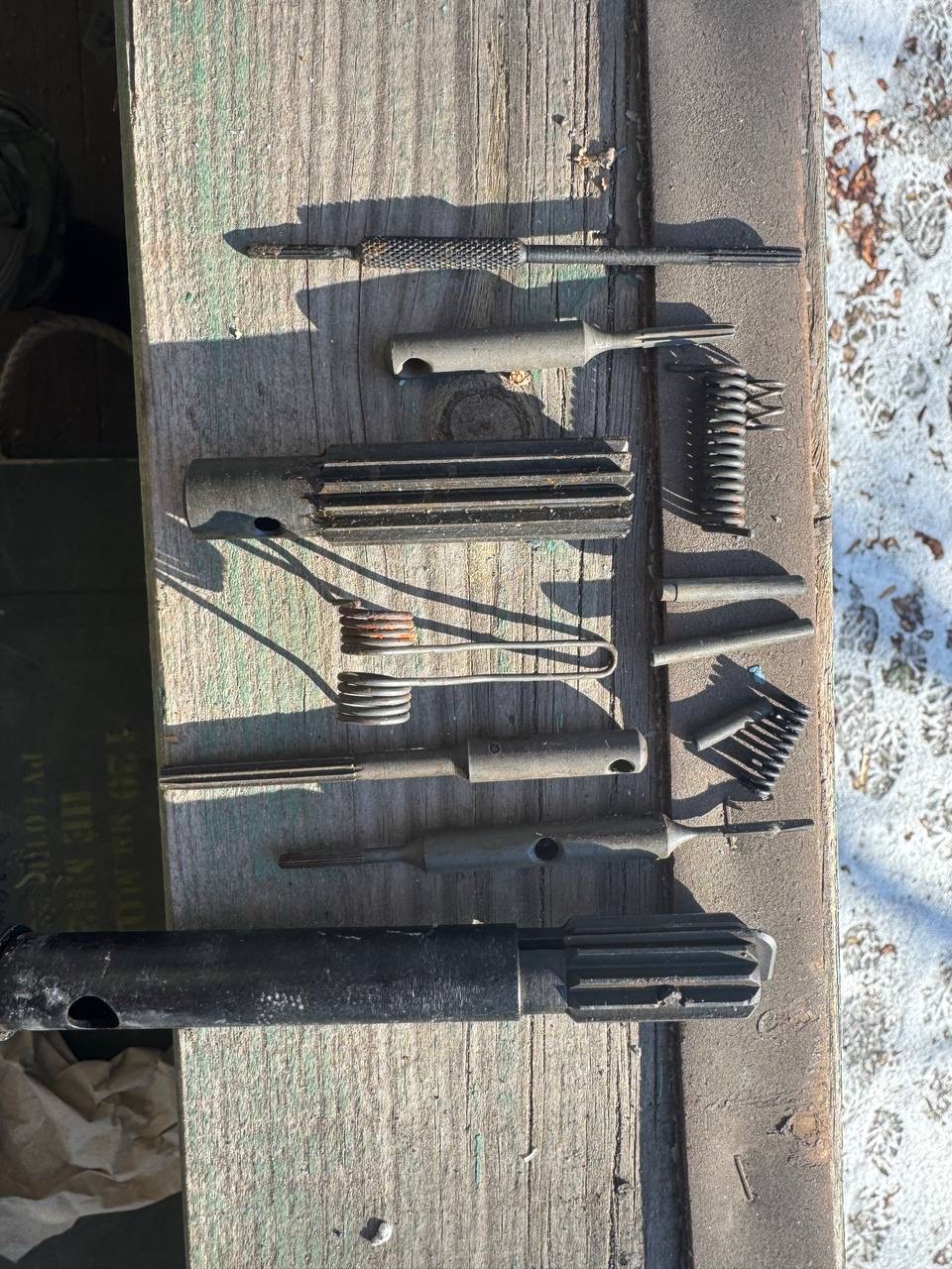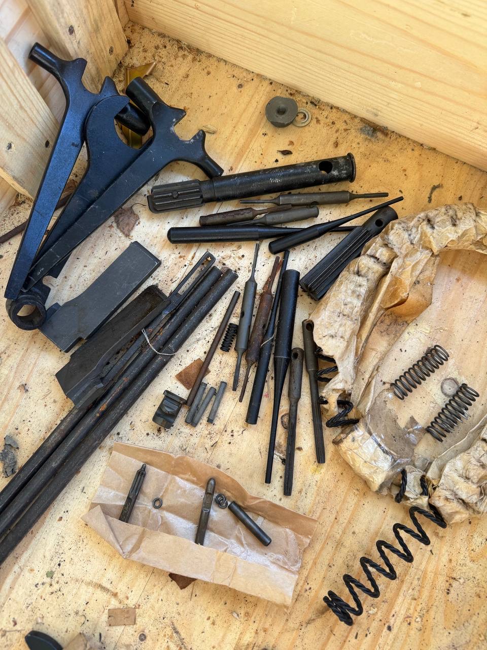 Доброго дня. Якщо Ви їх більш-менш акуратно розкладете, і зробите фото, де будуть 2-3 деталі, а не всі разом, то це суттєво спростить роботу людям, які зможуть допомогти. Як мінімум половина запчастин та приладдя від ДШКМ (викидач, бойок, ударник, прочистки, шомпол тощо)