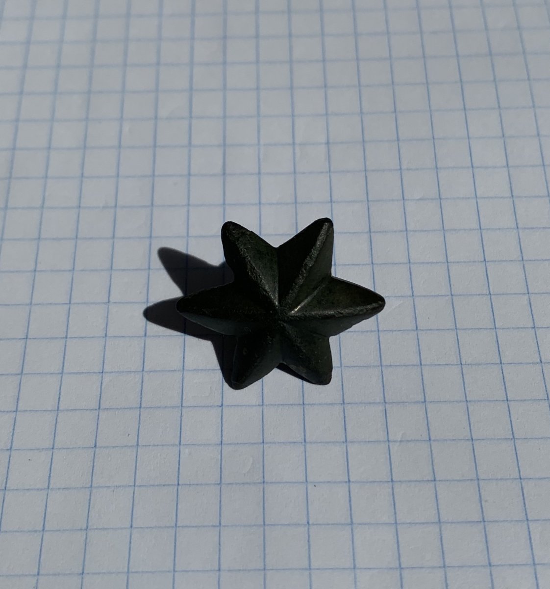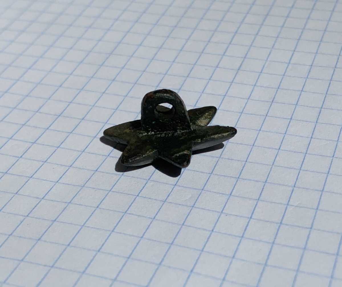 Возможно, дробница периода Киевской Руси (судя по пришивному уху). В основном попадаются таких форм: В виде звезды ещё не встречал. Но такую форму они полюбляли. Недавно поднял вислую печать, которую покромсали, дабы придать ей форму пятиконечной звезды: