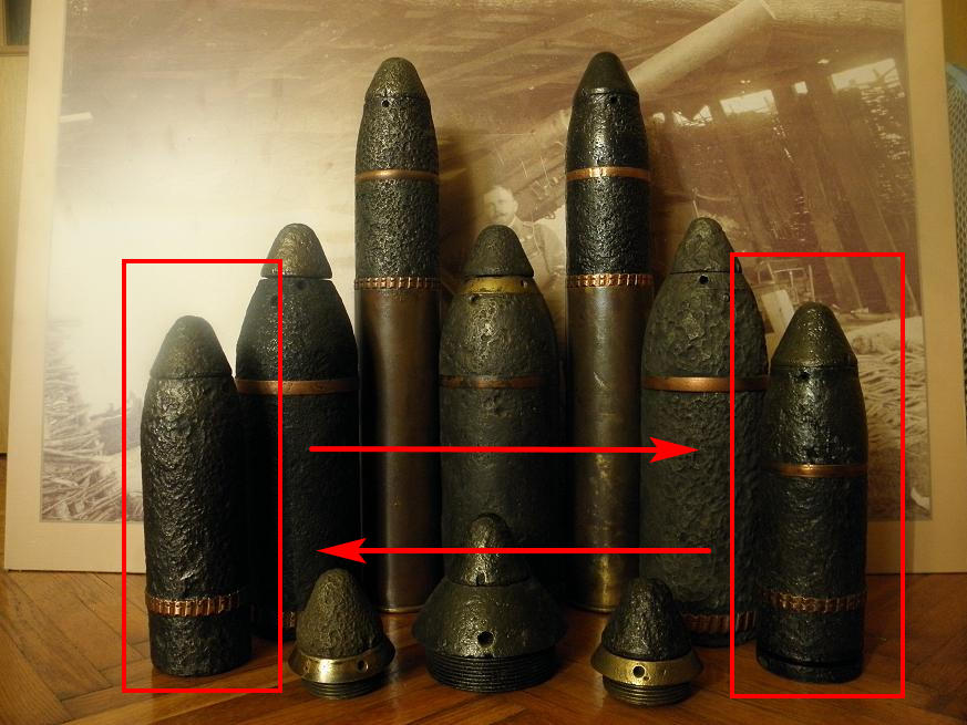 Вот Вам фото....Опять "не похоже"?....Пояска в верхней части нет?..."Печалька":D:beer:??? Ну не по всем типам снарядам к различным орудиям Австро-Венгрии есть инфа в инете, не по всем...