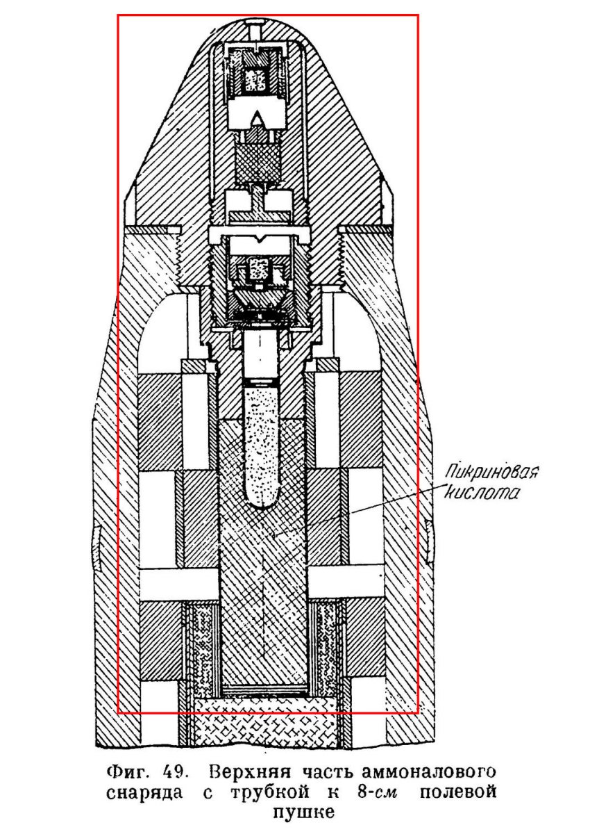 Австро-Венгр. 8см. Граната (думаю кольцевая) с ударным взрывателем. Взрыватель на схеме показан в 8см снаряде. Фото с форума. Спасибо их автору.