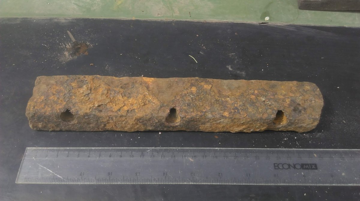 Фрагмент рваної броні - товщина - 30 мм.По краях: зліва, знизу, справа є зварні шви. Довжина 181 см, ширина близько 50.