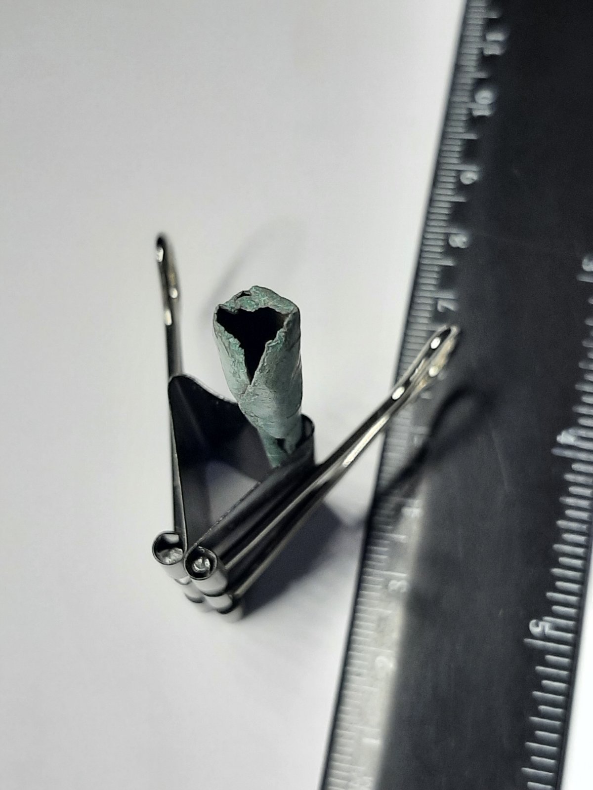 Всім добра. Підкажіть будь-ласка, що за предмети. Коп по РЗВ. Перший предмет із бронзи. Схоже на накінечник. А може й ні. Має втулку. Другий - залізо. Наперед вдячний.