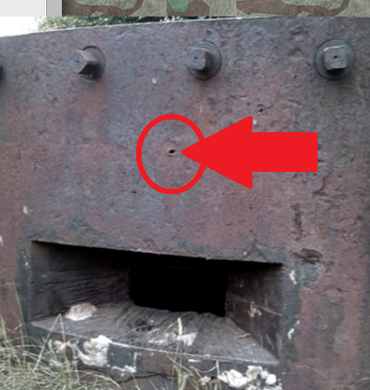 От вам більш збільшений ракурс чужого фото на східну амбразуру, але треба завжди фігурувати особистими світлинами з потрібними вам ракурсами - це і освітлення та і збільшення в масштабі потрібного вам елементу... кожен дрочить, як він хочить. Треба ще обдивлятися броню (стіну), яка всередені каземату бронековпака навпроти східної амбразури - чи залітали туди кулі. Можливо, по ржавому "СПІВОЧОМУ ПЕНЬКУ" лупили саме представники кровожерливих гітлерівських головорізів (о я дав... по-евдокимо-ясевські!) з 279-го чи 280-го ПП 95-ї ПД, які переправилися через вузьке місце броду через р. Вета, що знаходилося перед самим "носом" у ДВС № 130. Якби ця червона пенькоподібна залізяка щось значила в обороні 8-го БРО та стріляла по ордах, то сюди б німці дуже швидко притягли 37-мм протитанковий Рак 35/36 та повибивали до херів собачих всі стріляючі амбразури споруди, як вони це снайперські зробили з західною та центральною амбразурами ДВС № 137 з цього ж БРО. А так гарнізон сидів тихесенько, покурював жмурячи одне око на нижньому поверсі самокрутки... та пошепки повторював з недокуриного листка зошита тексти пісень. Уважно читайте тексти досліджень минулих років... і як казав в мультику червякоподібний велетень КА: "ВЕРЬ МНЕ!"