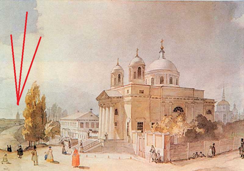 ...на фото - стара пожежна каланча на вулиці Костьольній : (ну, вони ж написали - "Кірхе штрассе"...?) Шевченко Тарас Григорович (1814-1861). Костьол у Києві. (акварель) 1846 рік.