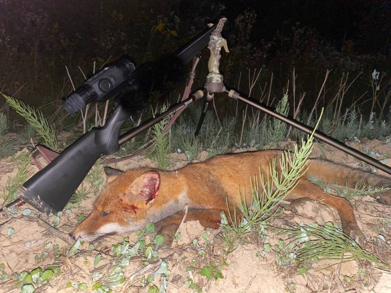 И так - экспансивное раскрытие на дозвуке - когда оно нужно и когда оно не желательно? Оно нужно при охоте на мелкого зверя скажем на лису - можно стрелять не по месту а просто по силуэту животного - пуля остается внутри животное ложится на месте. Вот фото отстрела лисы пуля 150 гран ЭКСПАНСИВНАЯ дозвук дистанция 100 метров: Однако - мощности пули на дозвуковой скорости - ее мало и на экспансивное раскрытие уходит ее часть. Поэтому если охотиться на ОТНОСИТЕЛЬНО крупное животное крепкое на рану например подсвинок - то лучше использовать обычные не экспансивные пули либо пули с умеренной экспансивностью со срезанной верхушкой 150 170 235 гран они дают раскрытие в тканях на уровне +100% в диаметре.