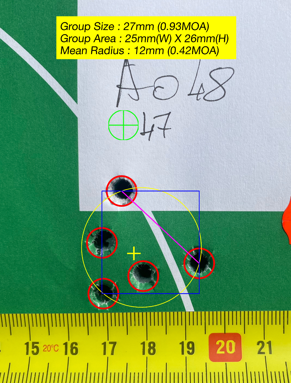 Сьогодні відстріляв 63мм, 64 мм, 65мм, 66мм, 67 мм ( вже торкались нарізів) Різниці не побачив все прилетіло в 1 моа. У мене 62-63 іноді закусує при подачі, то ж для себе зупинився на 65 мм. На фото виставив результат 64 , 65 і 67 мм.