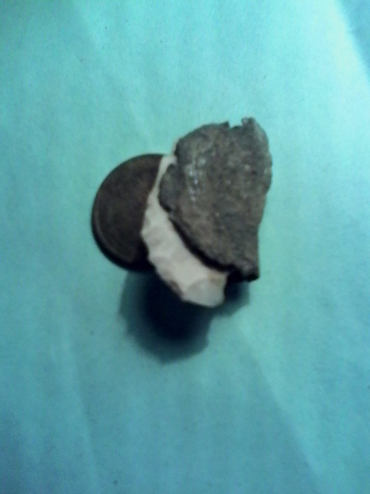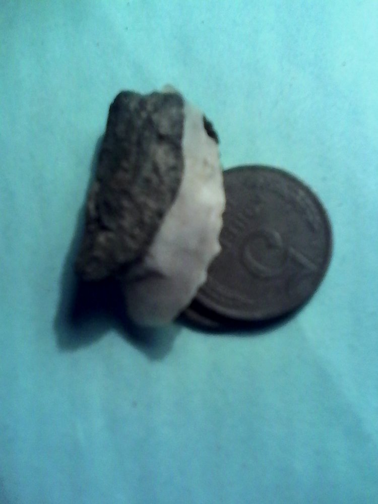 Вот ув. форумчане попалась такая вещь.Место находки Харьковская обл. Из сопутки предметы разных времён.Материал-обтёсаный камень светло-серого цвета завёрнутый в металл белого цвета.Размеры-36х23мм.