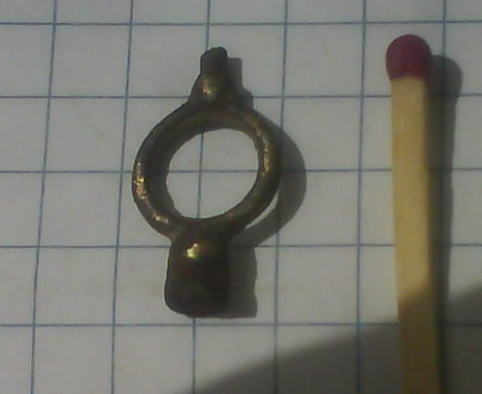 Выкопана на поле на глубине сантиметров до 10 . Сопутки как таковой не было не считая пуль разных и кусков красного кирпича. Метал был тусклый я его немного почистил протер и проявилась желтизна (может бронза или латунь или золото :) ) .