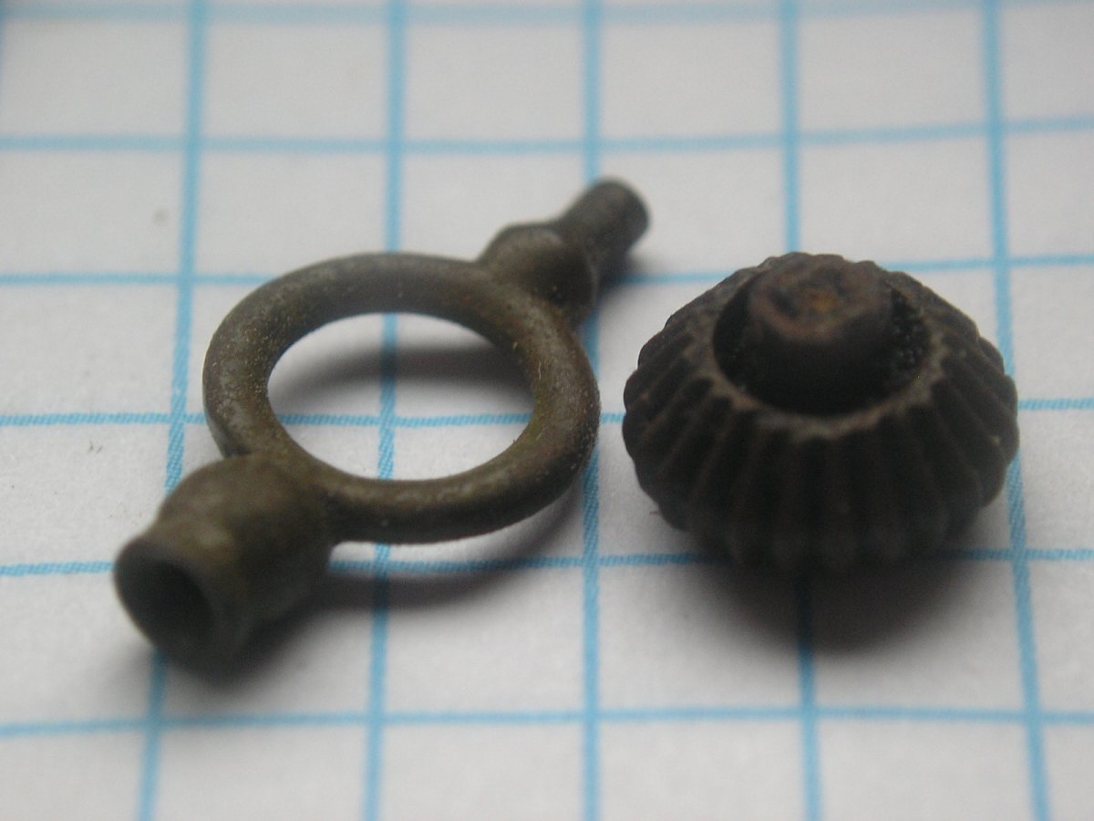 Был ключ от часов. Железная часть сгнила. У меня есть такой же.
