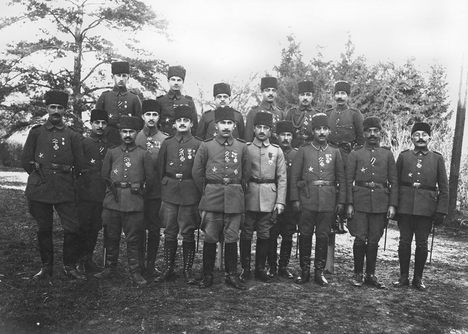Наступне фото розмістив також в темі Собаки в ПМВ. KuK officers of the Automobile Company with HE Mustafa Kemal Pasha (Atatürk) commander of 2nd Army at South-Eastern Front. German Lt.Col. Hans Guhr C of Turkish 1st Division gives the names of Some of the officers as : Captain Tiergaertner, 2nd Lt. Zratt, 2nd Lt. Albrecht.
