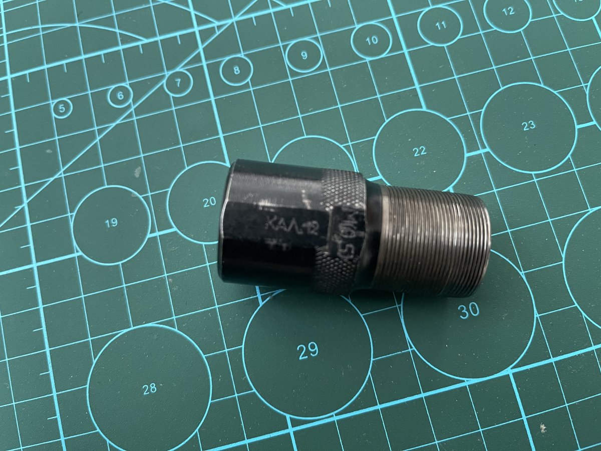 Всем доброго дня! Продам дтк для сайги 12, производства МЕ, настрел не больше сотни. На поверхности имеются незначительные коцки, резьба без замечаний. Контргайка в комплекте. Цена 800 грн. Получок, с нарезанной на нем резьбой. Мой дтк на него не накручивается, точнее, накручивается не полностью. Скорее всего резьбу надо перенарезать. При этом сужение на ствол накручивается без нареканий. Цена 300 грн Отправка нп, оплата или на карту или наложка Резервы прошу оставлять в теме дтк продан в лс Сужение продано через лс