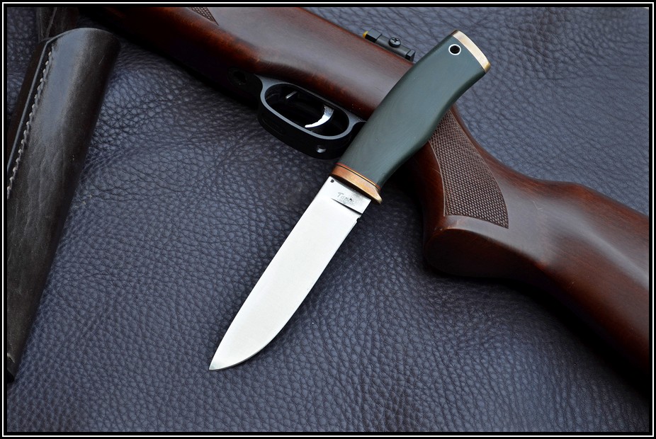Рукоять микарда оливка, больстер тыльник мельхиор. Чехол кожа.