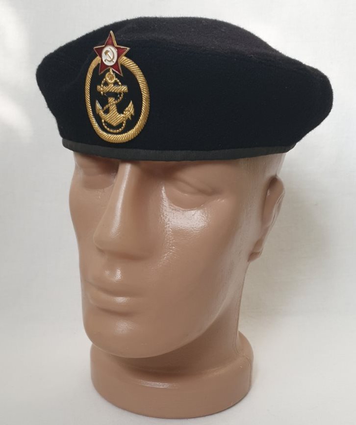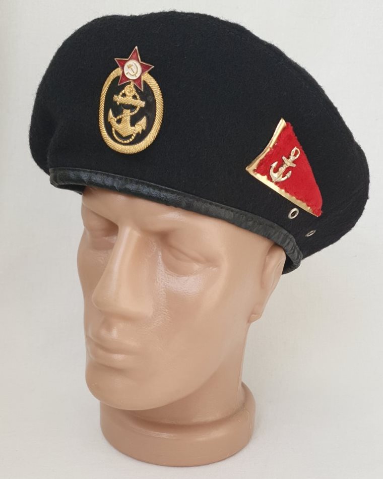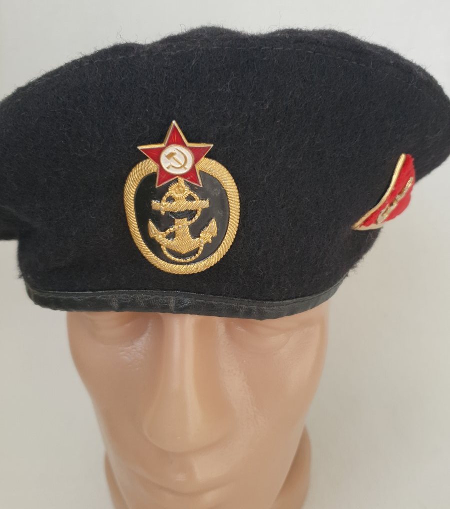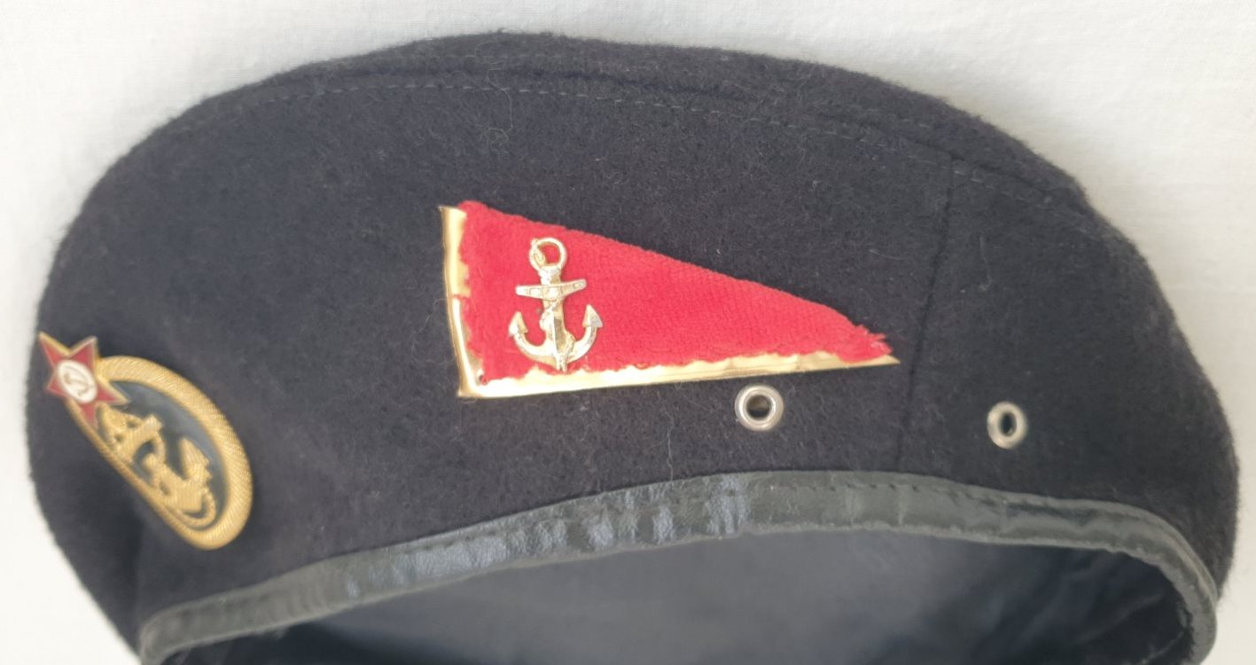 Эмблема на берете не дембельская,а вполне уставная и редкая. Это эмблема для главных старшин ВМФ обр. 1959 г. Морской пехоте таких эмблем не полагалось.