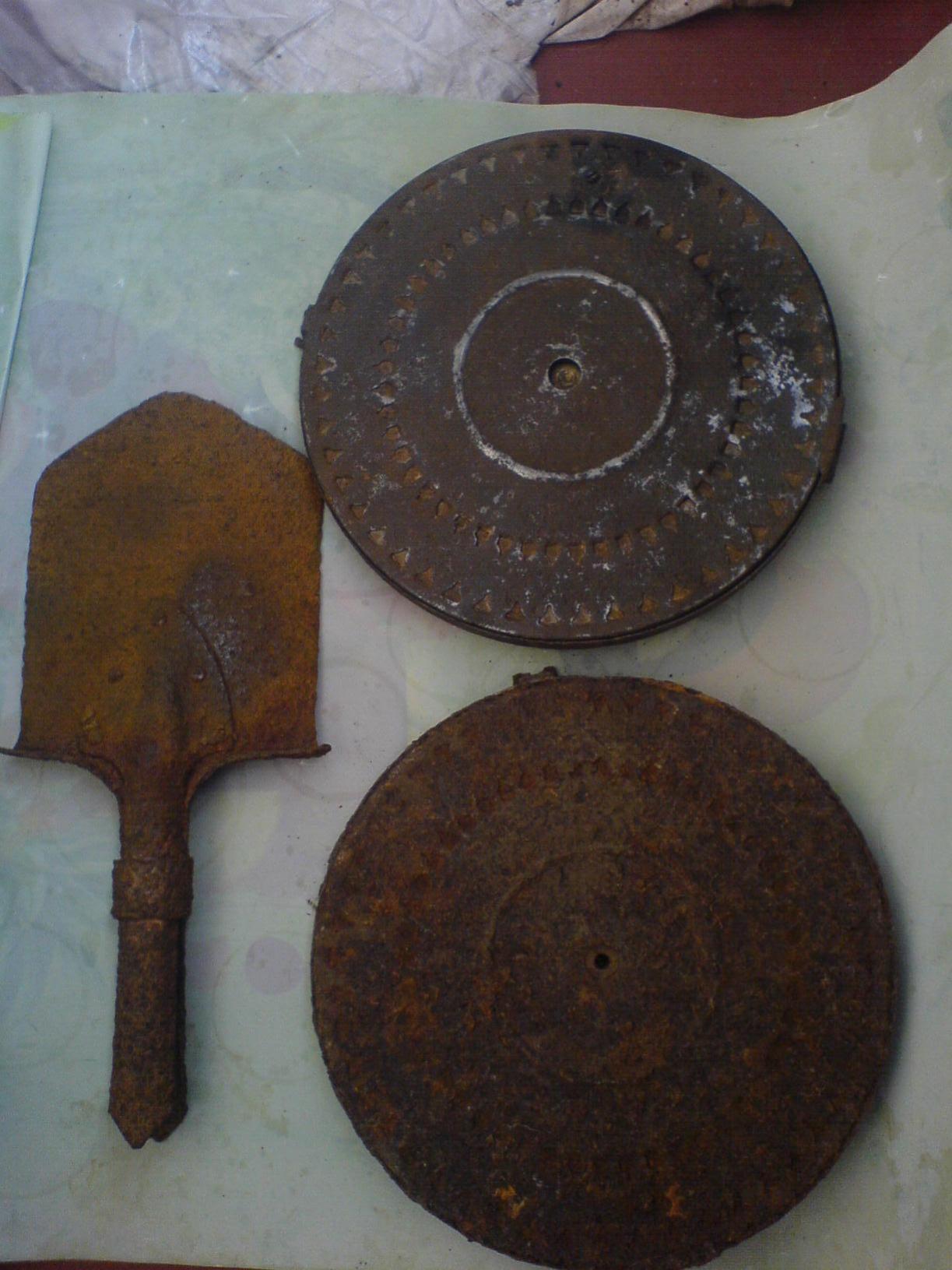 крепчайшая копанина пружины и клины на месте, верхний на половину высверленный болт ,нижний неоткрывался... + лопатка советы.... за всё 70 грн!