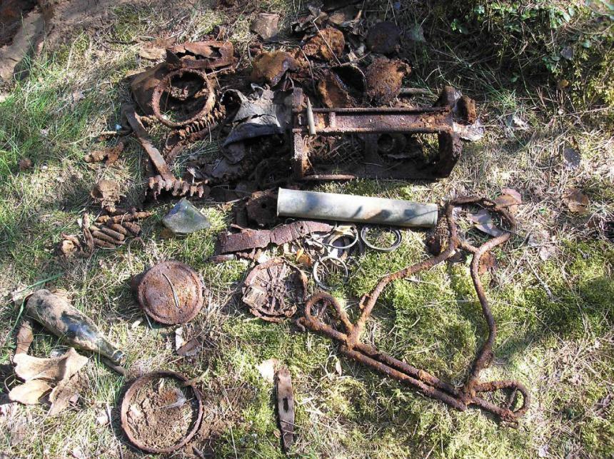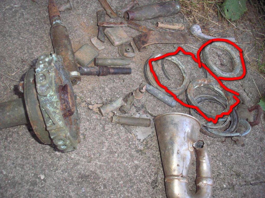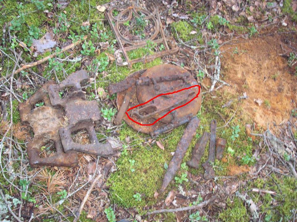 А вы про этот кусок фото ближе не зделаю братан по лопате забрал не пойму зачем, згнила бронза полностью разваливалась в руках. А я голову ломал от чего этот магазин... а бегали там по лесам все кому не лень в разные года.. Клесо(на фото ниже) с пушки еще с первой мировой тоже какова х... там делало..