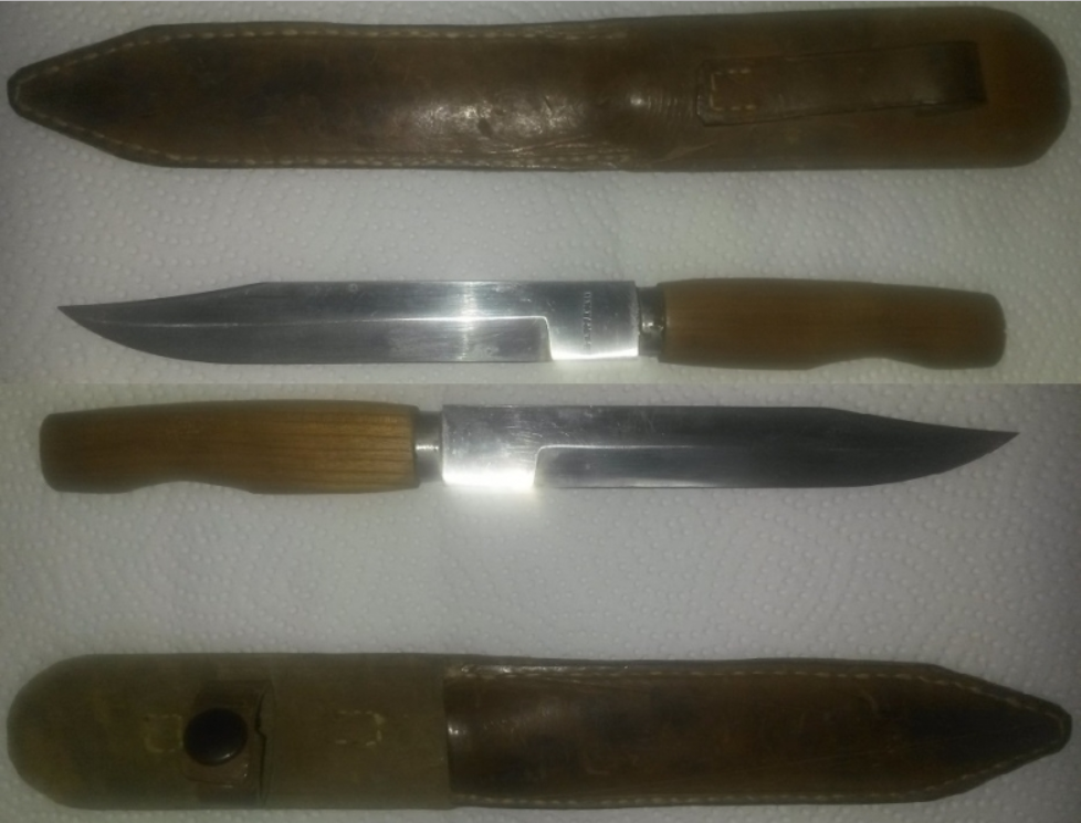 Добрый всем вечер. просьба высказать мнения по вопросу подлинности предметов. Фото к сожелению только эти, но и по ним думаю можно разглядеть моменты, указывающие на ЗА или ПРОТИВ. Сам склоняюсь, что оба ножа подлинные. ("Вишню 42 так любили", что всю краску съелозили и оборваный ремешок заменили на новый, а "Трудвач" возможно ножны не его. имхо) Заранее благодарен за помощь. С Ув. Дмитрий.