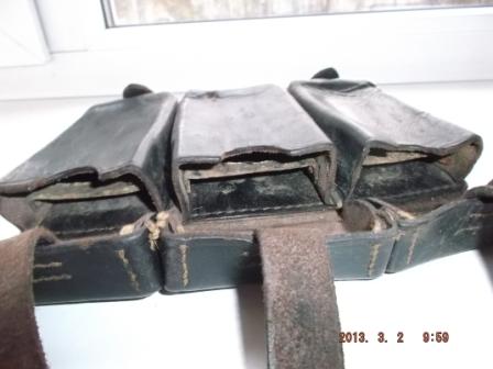 Два подсумка к карабину "Маузер". Клейма разные- 1942 и 1943 г.г. Подсумок 1 в очень неплохом сохране, У подсумка 2 порвана левая вертикальная полоска для крепления на ремень (легко ремонтируется). Цена 2550 рублей с почтой по России. За границу подороже Подсумок № 2