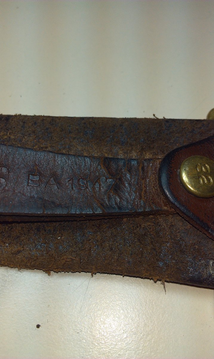 Перерыв интернет, не нашёл ремня такого типа (на кнопках-застёжках), с годовой маркировкой клейм на коже. Как на безвопросных шитых-строченых ремнях "на войну".