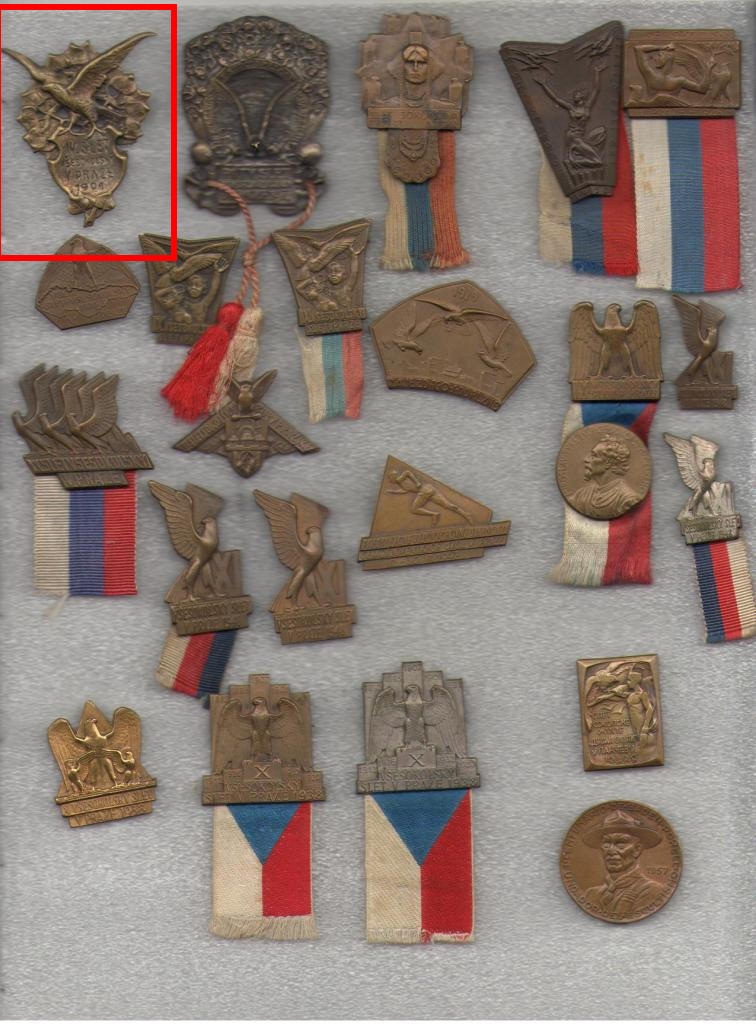 Первый значок - 4-ый Всесокольский слет в Праге в 1901г. http://forum.faleristika.info/viewtopic.php?t=101764 "Четвёртый слёт (более 12 тычяч соколов), прошедший в 1901 был интернациональным, на нём присутствовали делегации от поляков Галиции, словенцев, хорват, русских, болгар, сербов, черногорцев и даже французов и американцев. В слёте также впервые участвовали женщины, число которых в движении продолжало расти в последующие десятилетия. (из Википедии)"