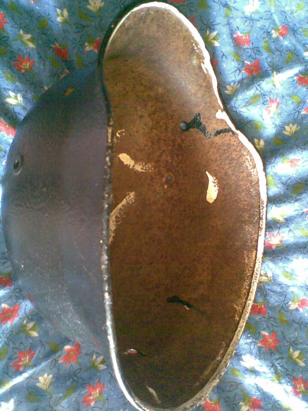 и вот т такой горшочек знакомый принес,окрас родной,обод подшлемника с небольшим дефектом(корозия)трещин нет,несколько щербинок по кромке,хочет за него 600гр. вопросы в личку или 80505720892 стас.