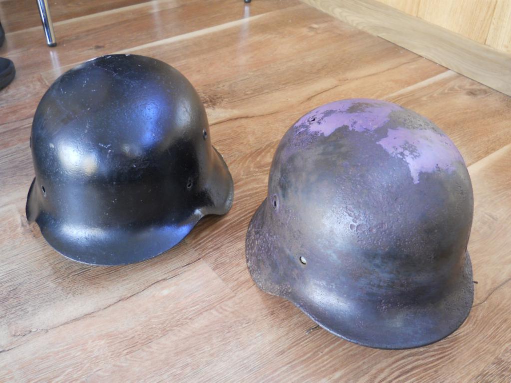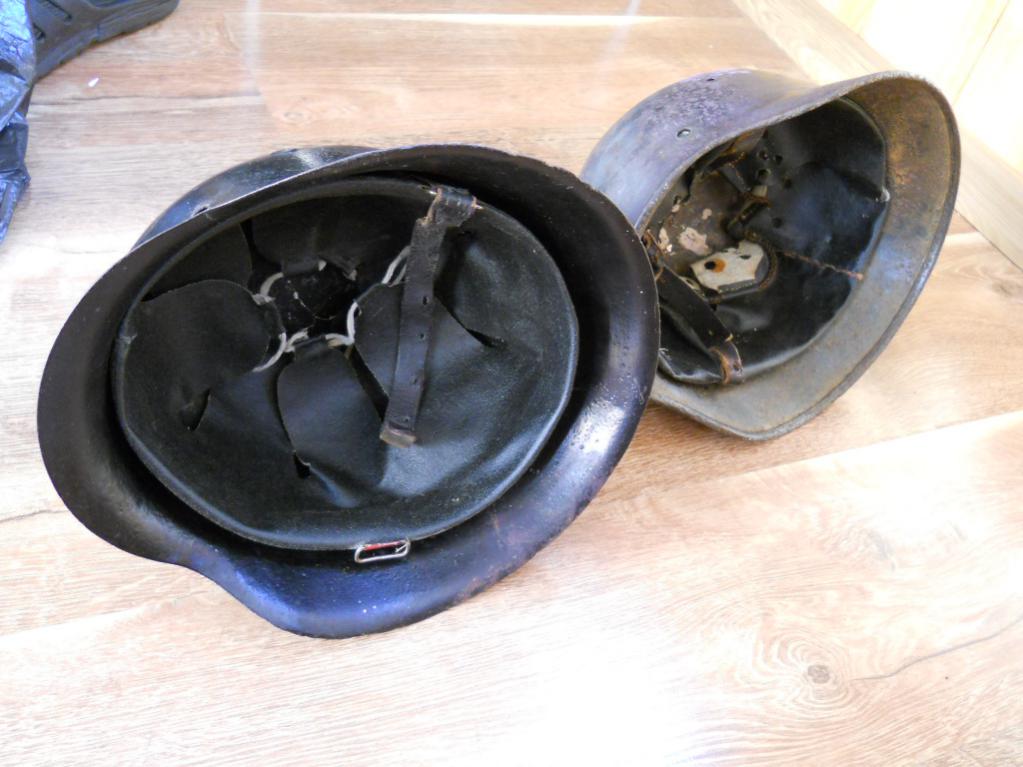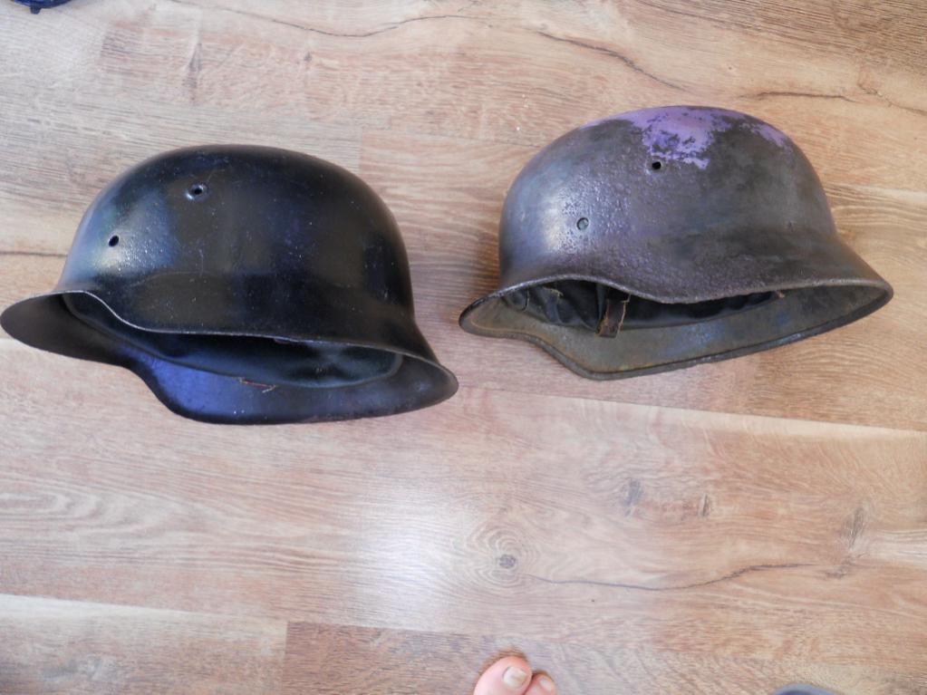 Попались две каки ,похоже м-42 и м40 состояние по фото, оба шлема разные, каждый имеет подшлемник ( самодельный ). первый шлем имеет следы ржавчины , сквозные дыры присутствуют ,но не значительные . второй шлем восстанавливался , имел не большую трещину, был зашпаклеван и покрашен в черный цвет , месте , где шпаклевалось небольшие трещины. особого труда не составляет , его восстановить. размеры 66 (обе) цена 350 грн/шт или 600 обе.