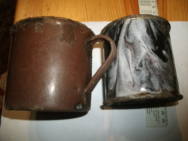 Здравствуйте уважаемые форумчане. Подскажите пожалуйста по кружкам и сколько может стоить каждая на ауке. Та, что без ручки не течёт. Заранее благодарен.