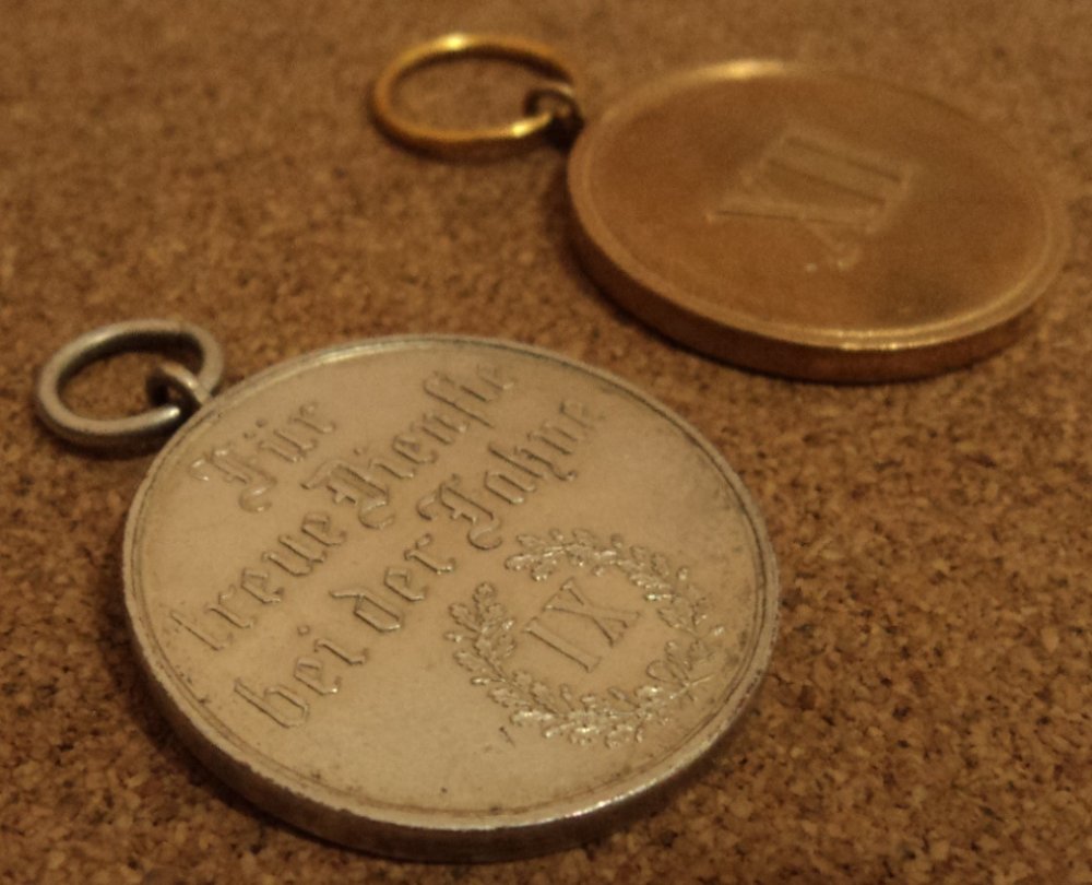 Предложу две выслуги: 1. Саксония - мельхиор, серебрение 9 лет 2. Пруссия - бронза 12 лет любые доп. фото по запросу. цена за обе - 350 грн