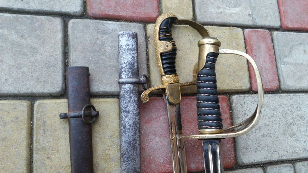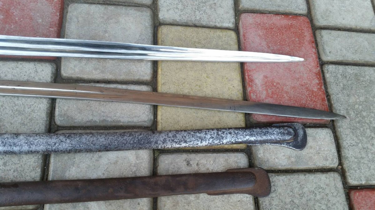 Ja by skazal sto germanskaja sablja realno Artilerijskaja i na Weimarskoj period po stampe Wingena, po gravirovke na garde realno dlja veterana pervoj vojny?. Vtoroj palasch realno Francii tjazeloj Kavalerii mozet byt 19.veka, ili exportnij?.