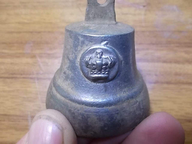 Звичайний дзвоник,оловяниста бронза,багато дзвоників раніше були з написами заводів виробників,чи часних підприємств,з короною я ще не зустрічав,можливо і ціна на нього більша від інших,адже і на такі речі є колекціонери,радив би продавати на Віоліті там на такі речі є попит.