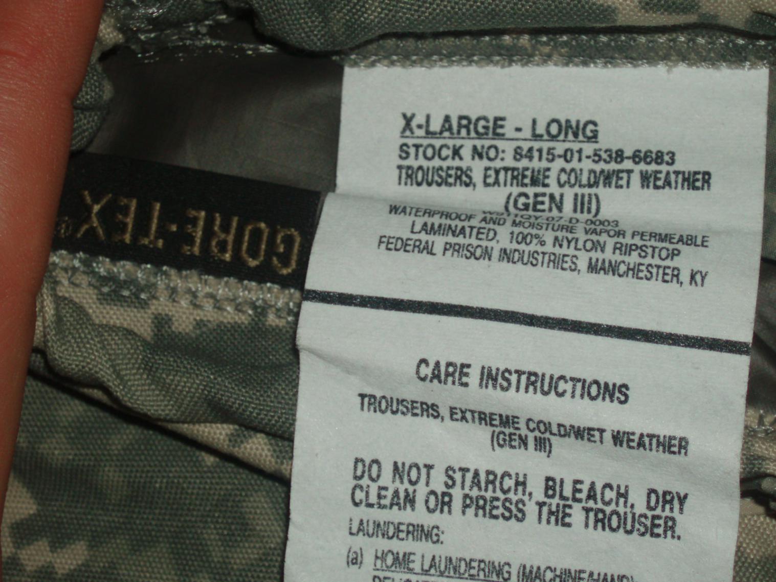 ECWCS Gen III Level 6 ..Американским всепогодным комплексом одежды армии США Extended Cold Weather Clothing System Generation III (ECWCS Gen III) (или по русски – Эк-вакс третьего поколения). Изначально разрабатывался, как несложно догадаться, для защиты служащих армии США от негативных факторов климата в наиболее неблагоприятных уголках земного шара при температурах до -40. Эта разработка возникла не просто так, а стала ответом на жалобы солдат Соединенных Штатов начавших боевые действия в Афганистане в 2001 году. На американских вояк обрушились одновременно все виды погодных условий - пронзительный ветер с мокрым снегом в горных районах, нестерпимая жара с песчаными бурями на пустынных территориях, проливные дожди и высокая влажность на открытой местности. ECWCS Gen III является, по сути, универсальным набором узкоспециализированных компонентов созданных из лучших на текущий момент материалов. Таким образом, одевая комплект в разных комбинациях, вы можете пережить любые погодные условия с максимальным комфортом. Причем высокая компактность каждого из компонентов позволяет иметь при себе весь комплект, а использовать только его части. Чудо комплект, по другому не скажешь, ECWCS Gen III состоит из 12 элементов – двух кальсонов, трех кофт, трех брюк и четырех курток. Каждый элемент предназначен для своего слоя, который, как правило, состоит из брюк или кальсонов и куртки или кофты, хотя и не всегда. Level 6 http://www.tacticaldistributors.com/...-iii-l6-bottom Защитный слой: Предназначен для ношения поверх базового уровня во время холодной, очень холодной и/или влажной погоде. Сшитый из двухслойного облегченного мембранного материала GORE-TEX®, шестой слой является влаго и ветронепроницаем. GORE-TEX® PACLITE® обеспечивает на 50% большую защиту от влаги и ветра чем мембраны GORE-TEX® предыдущих поколений и имеет на 30% меньший вес. В изделиях ECWCS GenIII используется облегченная (на 30% легче предыдущих поколений) двухкомпонентная ткань GORE-TEX® PACLITE®. Вместо третьего внутреннего слоя в GORE-TEX® PACLITE® используется тонкий слой из карбона и жироотталкивающего вещества, предотвращающий закупоривание пор мембраны. Его гладкая внутренняя поверхность уменьшает трение, позволяя слоям одежды скользить. Это дает дополнительную свободу движения и легкость при надевании/снимании одежды. Мембрана GORE-TEX® PACLITE® имеет водостойкость 20 000+ мм, паропроницаемость + г/м²/24 часа: 25 000. Лицензии на производство тканей с применением технологии GORE-TEX® имеет ограниченное количество компаний. Не смотря на то, что в настоящее время патент на технологию уже является открытым и на рынке существует множество подобных тканей, данная технология является ведущим отраслевым стандартом. По результатам испытаний, из широкопредставленных на рынке материалов, пройдя гидродинамический тест в течение 500 часов, только материал GORE-TEX® был признан водонепроницаемыми ("waterproof"). Аналоги GORE-TEX® являются не более чем водоотталкивающими тканями("water-resistant") так как в разы уступают по своим защитным качествам: H2NO Storm, Tripple Point 1200 (не более 120 часов защиты) и Ebtek, Omnitech, H2NO Plus, Helly-Tech, Dry-tech, Membrain (не более 24 часа защиты). Уровень паропроницаемости GORE-TEX® в 1,5-3 раза выше аналогов. Мембранный материал GORE-TEX® PACLITE® используется в ECWCS GenIII L6 - http://www.gore-tex.com/remote/Satel...shell/benefits 1. Ветронепроницаемость: внешний слой GORE-TEX® защищает от ветра способствуя сохранения естественного тепла. 2. Влагонепроницаемость: