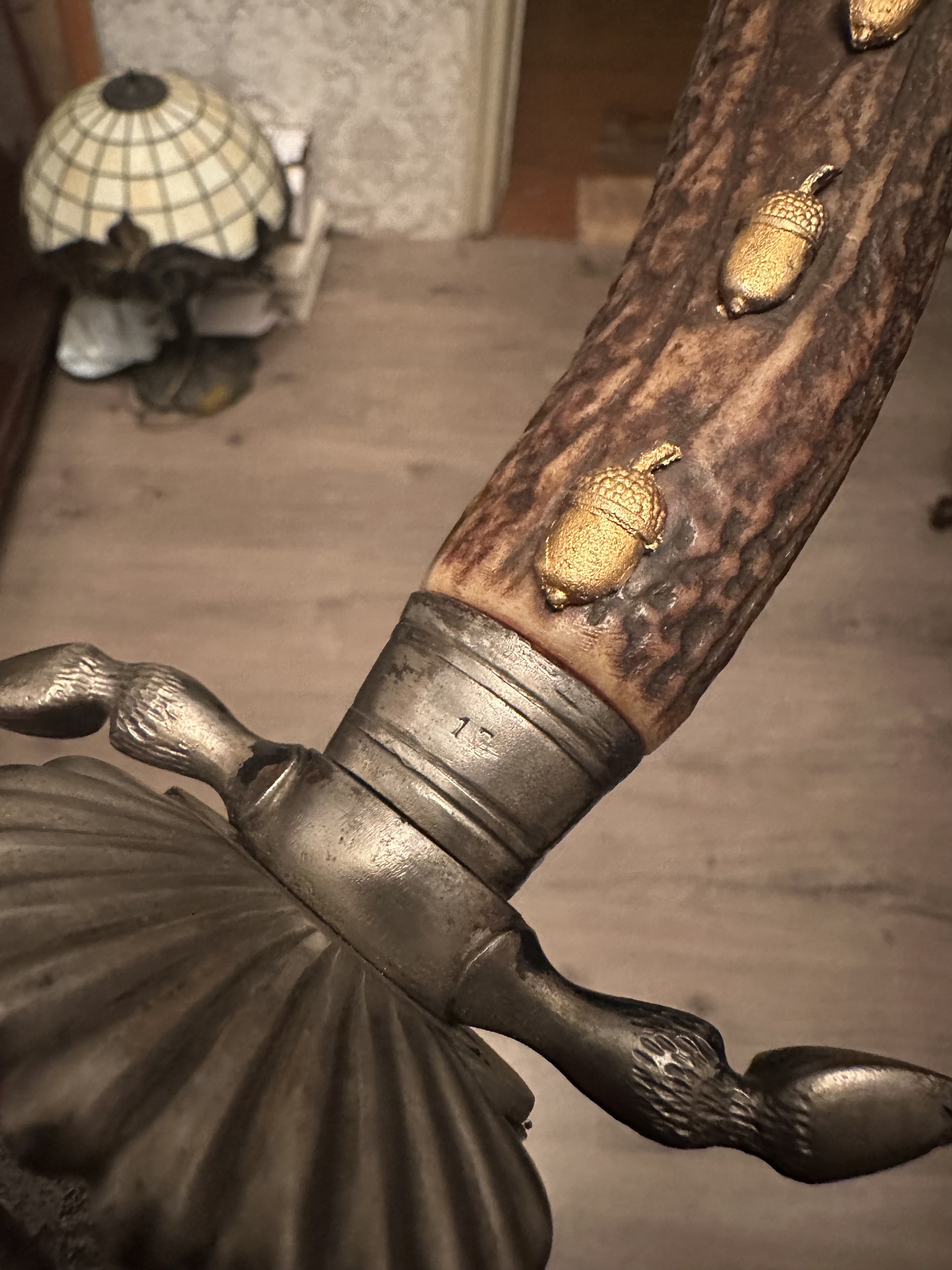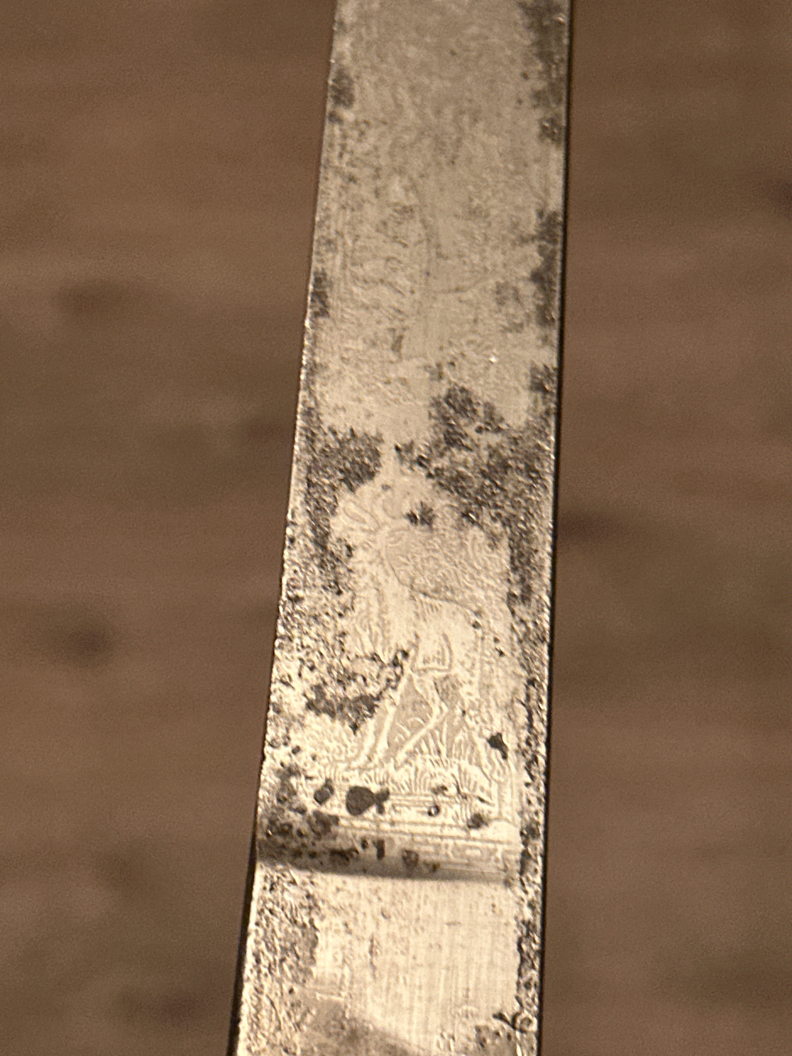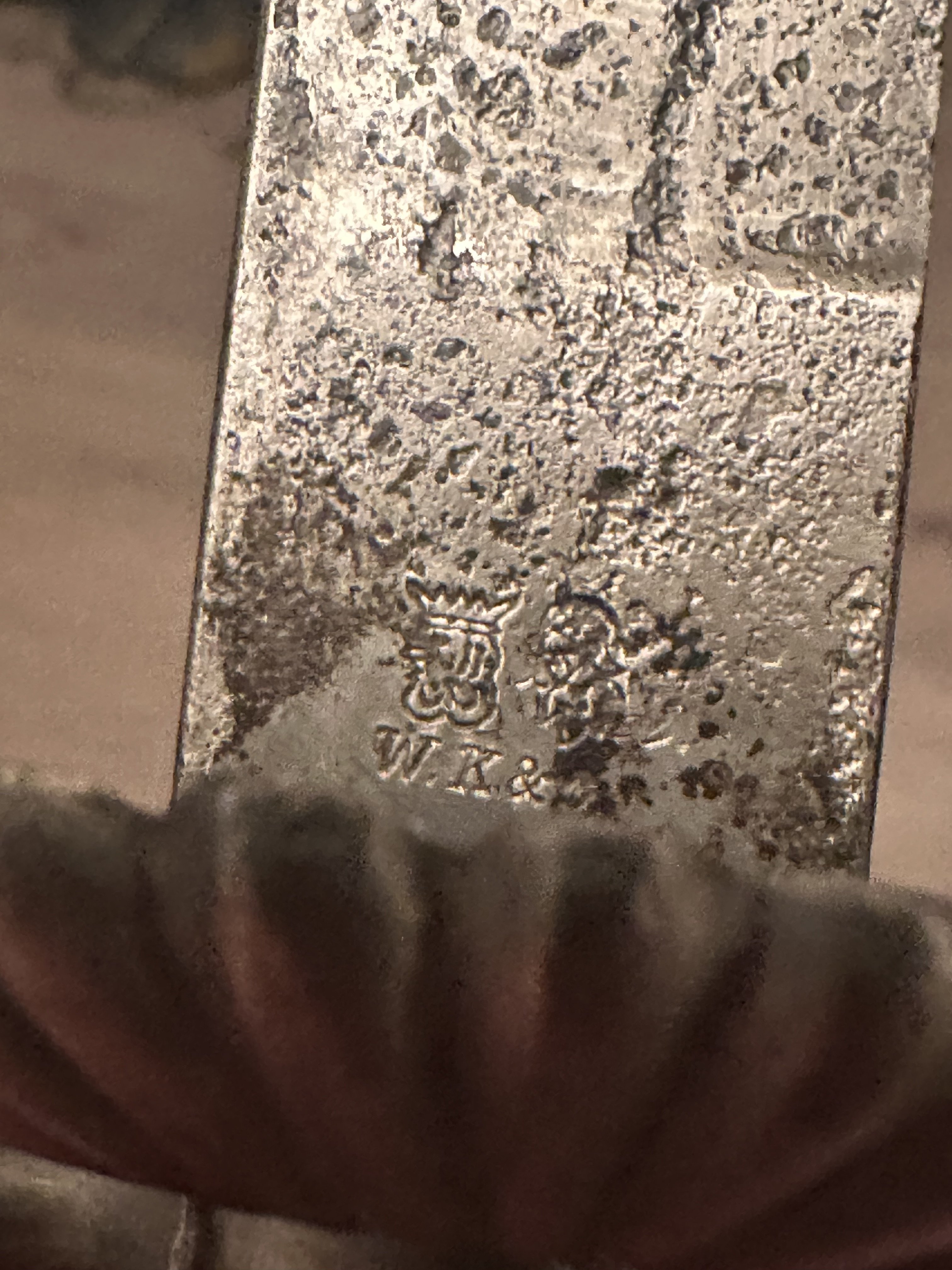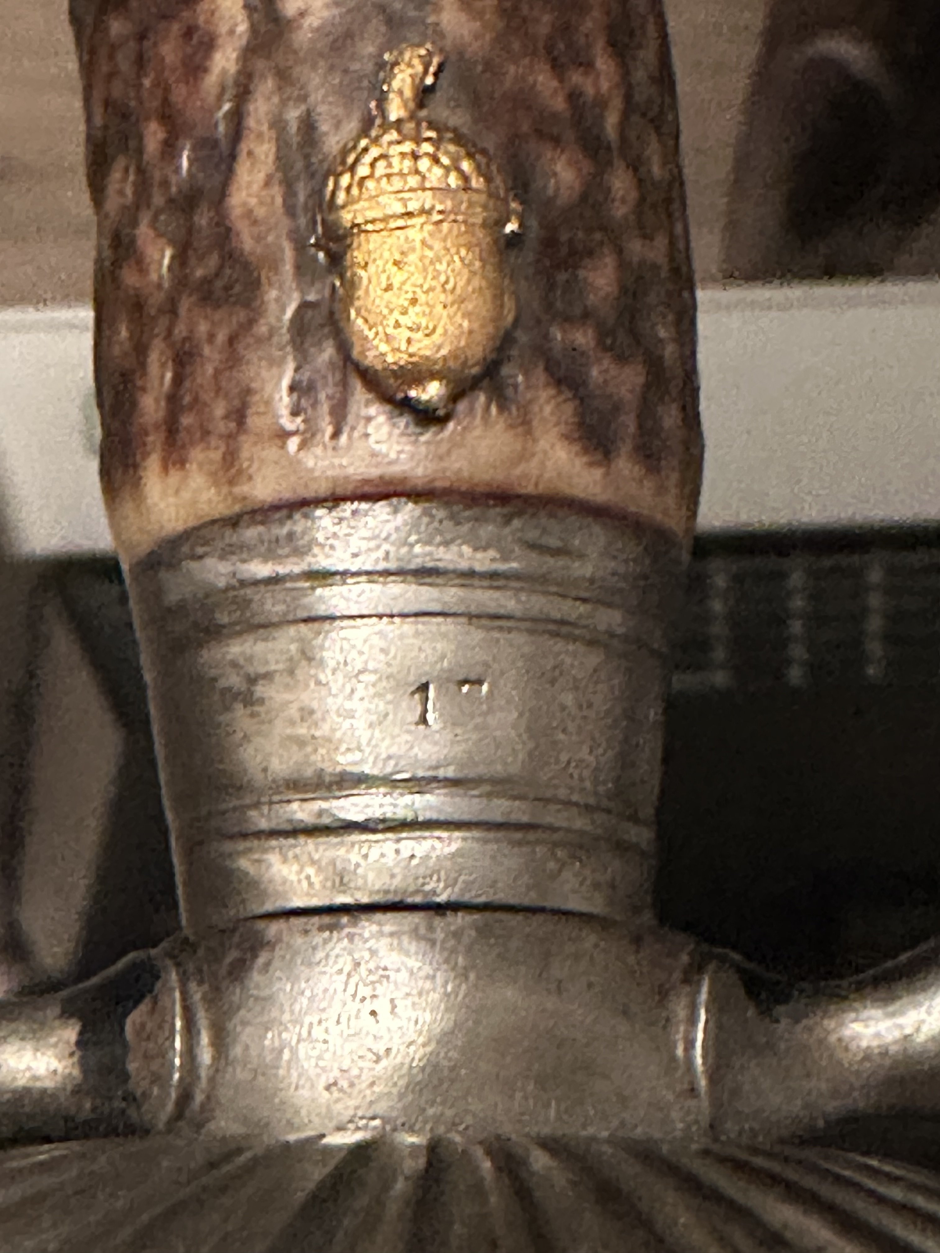 Та х.з. как оно туда попало, может по ошибке, а может использовалось ранее 1918го года,но в жизни чаше всего это клеймо встречается на предметах 1920х годов и не является редким. Ваш нож по характерным признакам выпушен примерно в этот период. Клинки ранних середины-конца 19го века олених кортиков были украшены гравировкой штихелем,а не травлением, а так же ранние клинки часто синились, золотились.Так что на 19век ваш нож точно не тянет, если вы об этом.Хотя стальная фурнитура косвенно указывает на раннее происхождения ножа,но не на 19век. Назвать вам точную дату его изготовления не сможет ни кто, вполне ваш нож мог быть выпущен и до ПМВ, хотя не понимаю как это может повлиять на его коллекционную ценность. Обычно, когда на этом форуме указывают ПМВ, это подразумевает, что предмет не был выпущен в период ВМВ или с 1933го по 1945 год,а был изготовлен ранее.