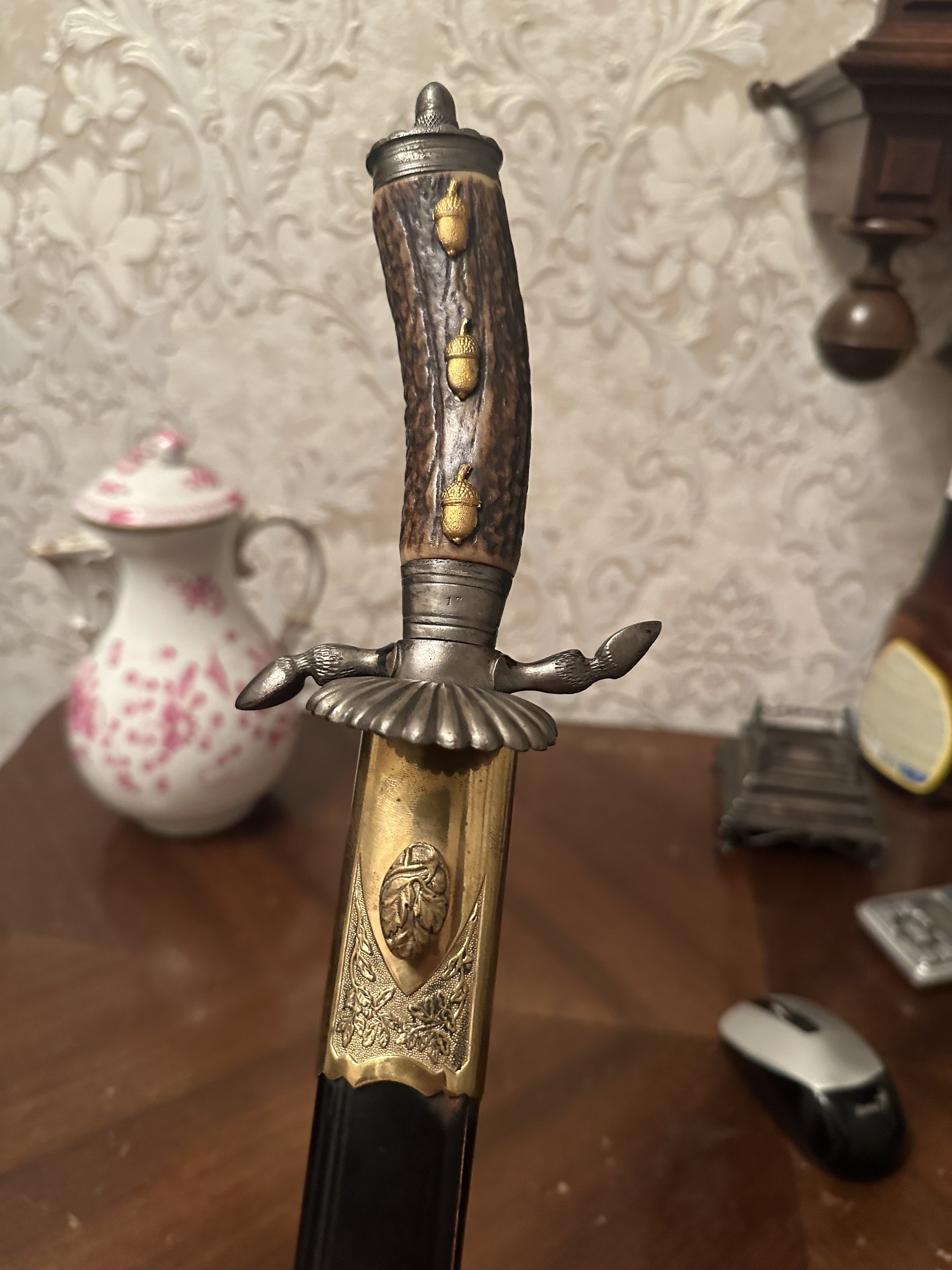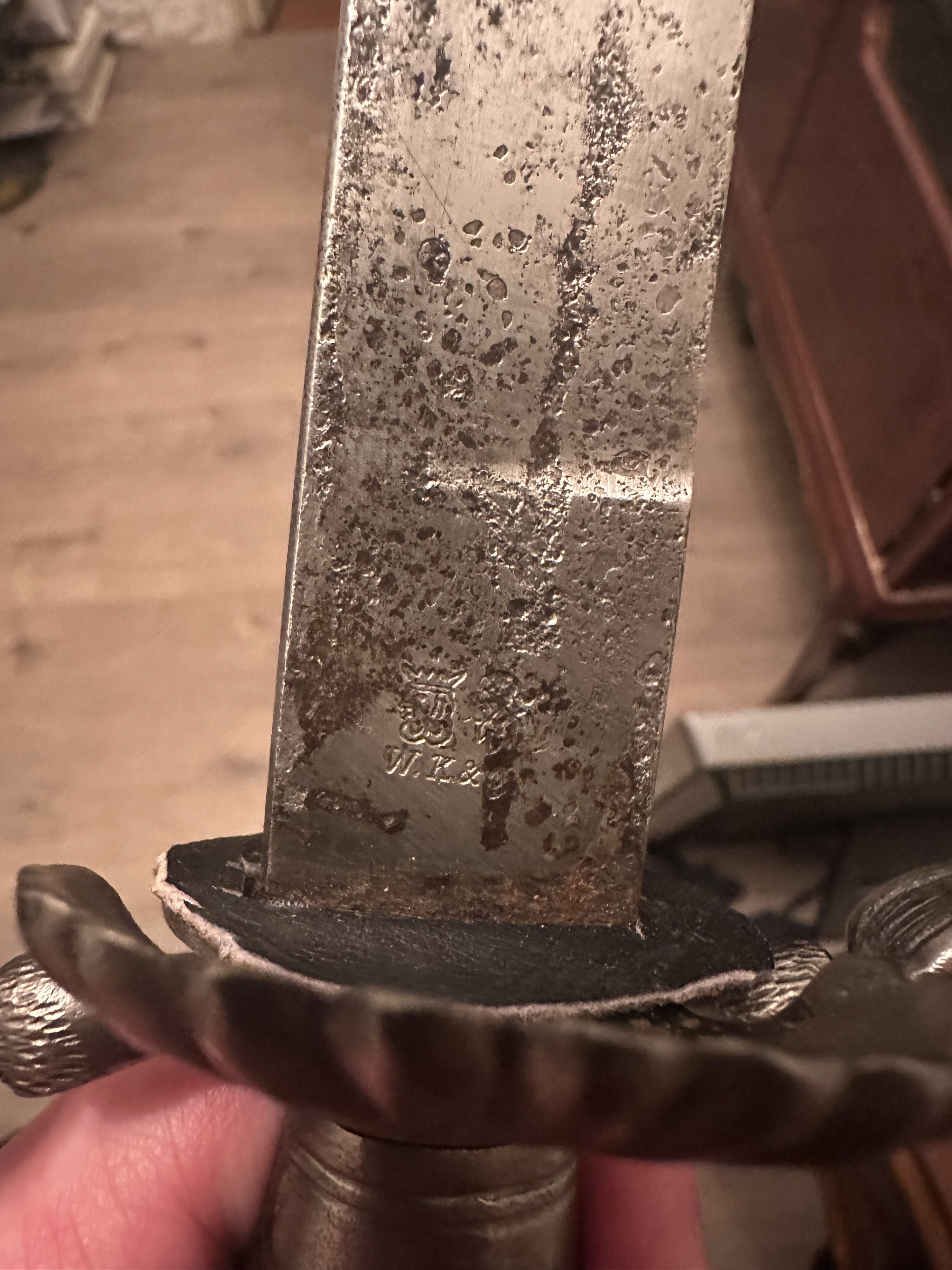 V reale etot stamp sovpadajet s periodom do 1918 goda ili maximalno do 1920, sostojanie Hirschfaengera neekstra no realno poka by nasli sebje originalnije nozny i davat drugije želudy na rukojat, bylo by prijatno kak nachodka s nechorosim reparirovanym klinkom otrzaven chemicesky.