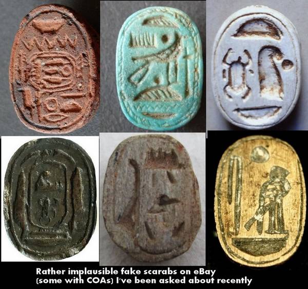 Спасибо за ответ! Ну все-таки прямо очень похожих на мой скарабей в этой подборке нет... Однако я написал доктору Брону Липкину, владельцу сайта который вы прикрепили, и он так же подтвердил что это фейк, так что да, ещё раз спасибо