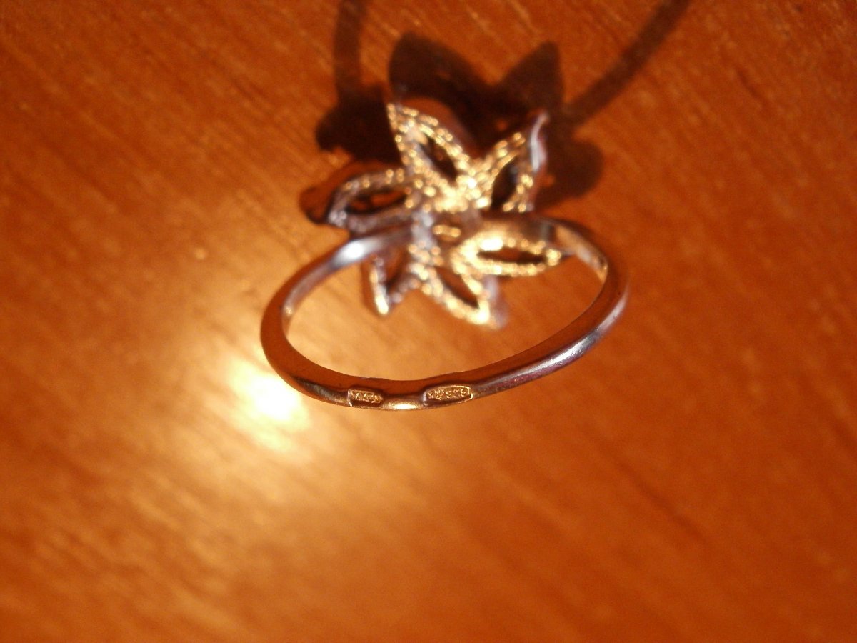 Можете купить на аукционе, выставил серебрянное 925пробы кольцо с цирконами Серебряное кольцо перстень Эдельвейс серебро 925 с цирконами