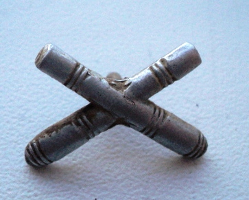 Выкопал такую алюминиевую эмблемку на закрутке. Длина пушки 2 см. Можно ли определить, каких она времен, война или послевойна.