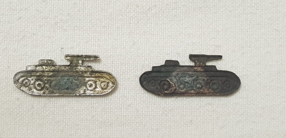 Приветствую, камрады. Прошу подсказать какого образца эмблемы РККА АБТВ. Первая эмблема - серебристая, вторая эмблема - золотистая. Заранее благодарен за подсказку.