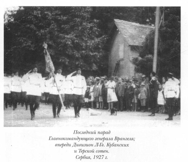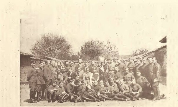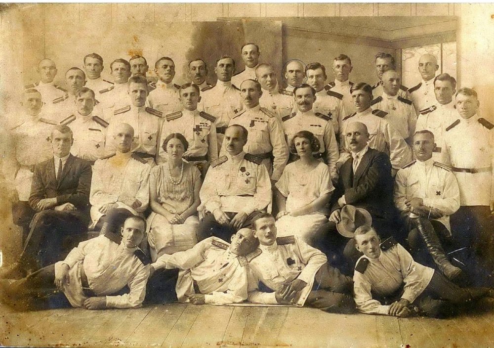 Офицеры армии Врангеля в Албании. Группа россиян, занявших Тирану. - Декабрь 1924 г. К фотографии: Второй ряд слева: 1-й - Вахмистр Зинченко (Первопоходник); 4-й - Коноплев. Остался в Албании, где и скончался после 2-й Мировой войны; 3-й - Вахмистр Киреев; 6-й - Ротмистр Сукачев (Первопоходник); 7-й - Полковник Улагай (Первопоходник). После занятия Албании Италией в 1939 г. ушел в Югославию. Во время 2-й Мировой Войны командовал Кавказским Горским отрядом у ген.Краснова. Благодаря албанским личным документам избежал выдачи большевикам в Лиенце. Скончался в Чили. 8-й - Полковник Русинов. Оставался в Албании до последнего времени. 9-й - Полковник Барбович. После занятия Албании красными примкнул к коммунистам. 10-я - Г-жа Улагай. 11-й - Полковник Берестовский. Скончался в Албании в 1944 г. 12-й - Ротмистр Ширинкин. Был выслан из Албании за поступки, недостойные офицера. 13-й - Поручик Раевский. По личным причинам добровольно покинул Албанию в 1925 году. Последний ряд: Корнет Силич (остался в Албании); Инженер Медведев (скончался в Бельгийском Конго в 1928 г.); Штаб-ротмистр Караблин; Корнет Белевский (убит з борьбе с красными партизанами в Албании); Ротмистр Фиалковский (остался в Албании).