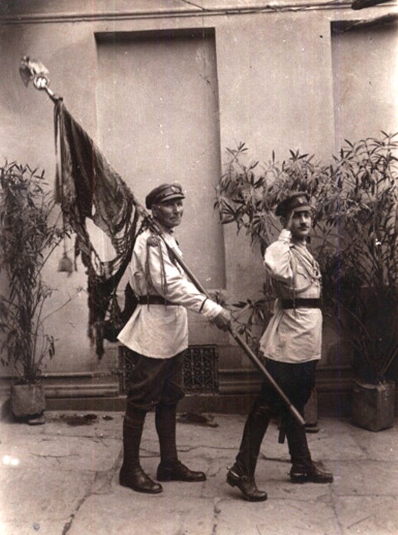 Знамя Лейб-Гвардии Гренадерского полка, Болгария 1922 год. Прославленное полковое Георгиевское знамя Лейб-гвардии Гренадер, собственноручно врученное полку Государем Императором Александром II и хранившееся английскими Гвардейскими Гренадерами более полувека... Было передано оставшимися в живых офицерами полка: капитаном Крупиным, поручиком Коргановым и поручиком Даниловым в 1958 г. на сохранение английским гренадерам.