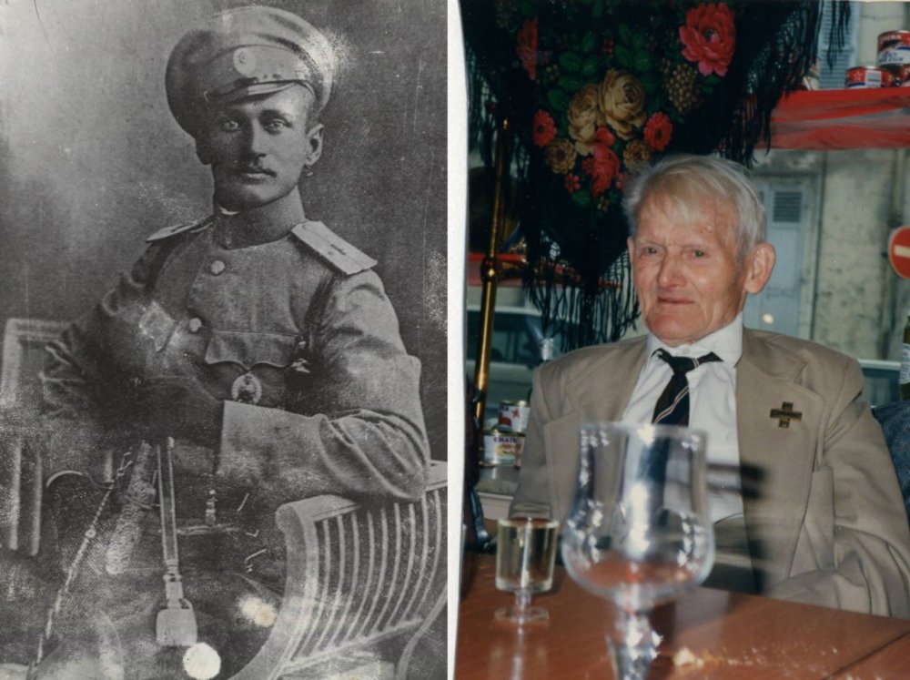 На первой фотографии - хорунжий ВД, офицер 1 -го Донского полка Виктор Иванович Сысоев. Фото было найдено в старой мебели на помойке в Санкт–Петербурге и хранилось у питерского историка Павла Константиновича Корнакова. Изображенный на нем Виктор Сысоев погиб в 1915 году в конной разведке при местечке Алленштайн в Восточной Пруссии. Его брату Анатолию было 14 лет, когда они расстались, стерся в памяти образ погибшего, но память жила всегда. Младший - Анатолий Иванович Сысоев - Галлиполиец и партизан Семилетовского отряда в 1918г. Родился на Дону в 1900 году. Спустя 78 лет после расставания с братом случайным образом (или волей Провидения) незадолго до смерти Анатолию привезли из Питера фото брата. 92-летний старик плакал от счастья… Так довелось ему, стоя у двери гроба, взглянуть в лицо своему брату Виктору, которого он пережил на 77 лет! Второе фото сделано в 1992 в Париже, незадолго до смерти Анатолия Ивановича.