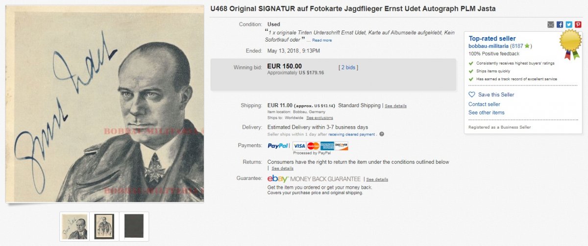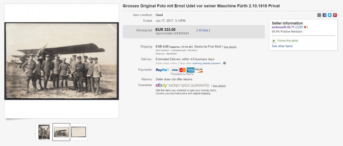 Только что смотрел Дескавери -- Охотники за реликвиями--(покупают склады,ячейки ......)6сезон 9серия. Так вот нашли в одном складе несколько пистолетов и один из них принадлежал Эрнсту Удету. Продали за 50тысяч дол. колекционеру.